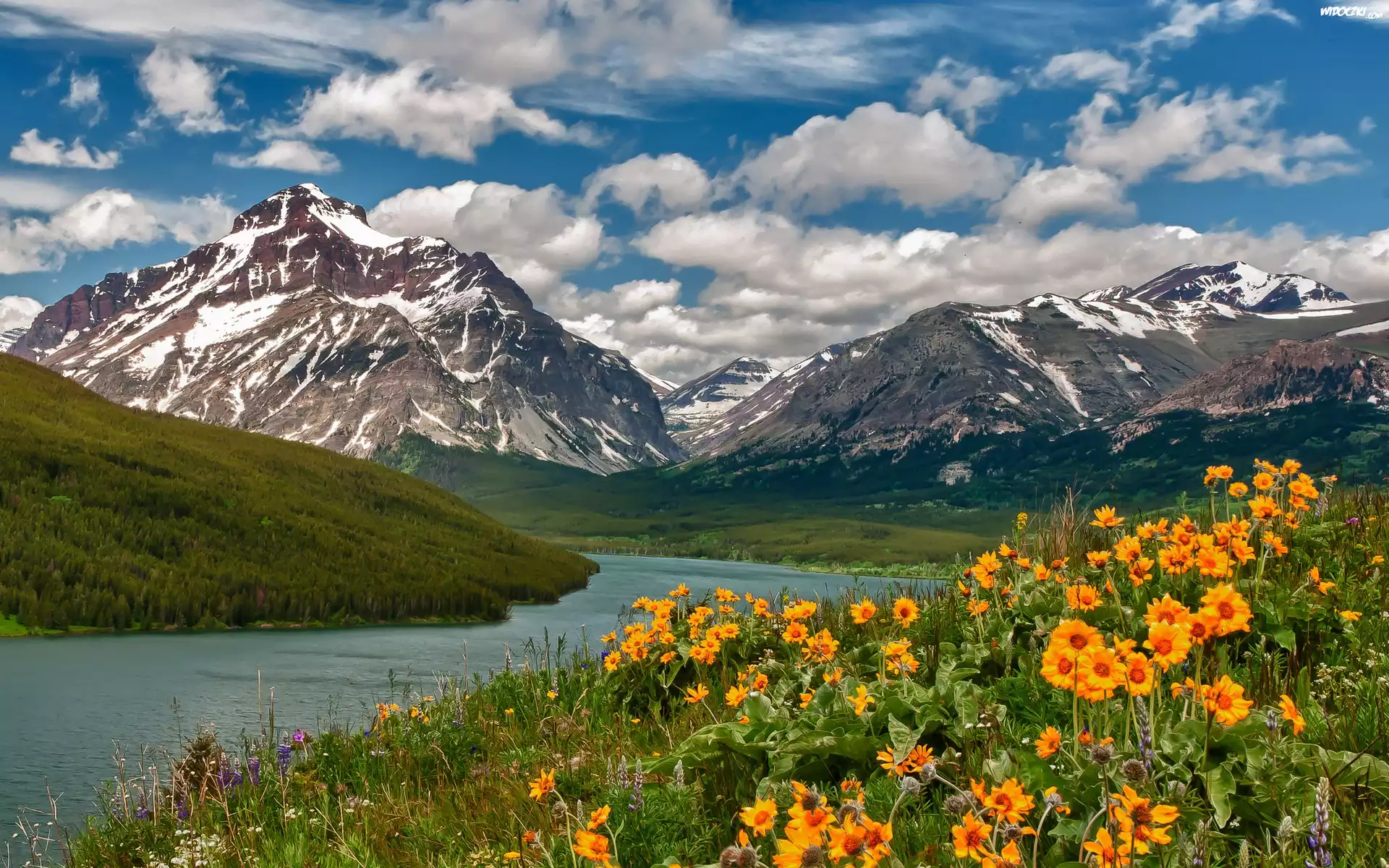 Zdjęcia, Rzeka, Góry, Kwiatki
