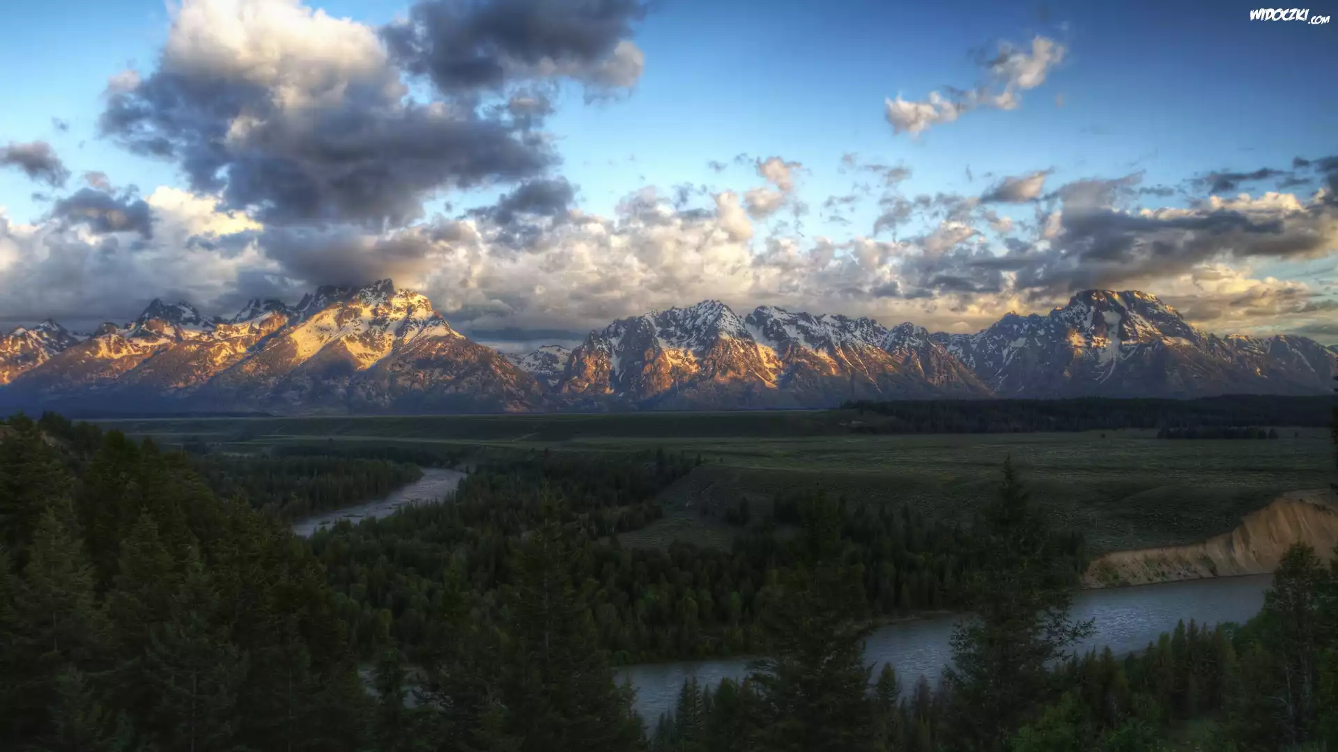 Zdjęcia, Góry, Las, Rzeka, Chmury