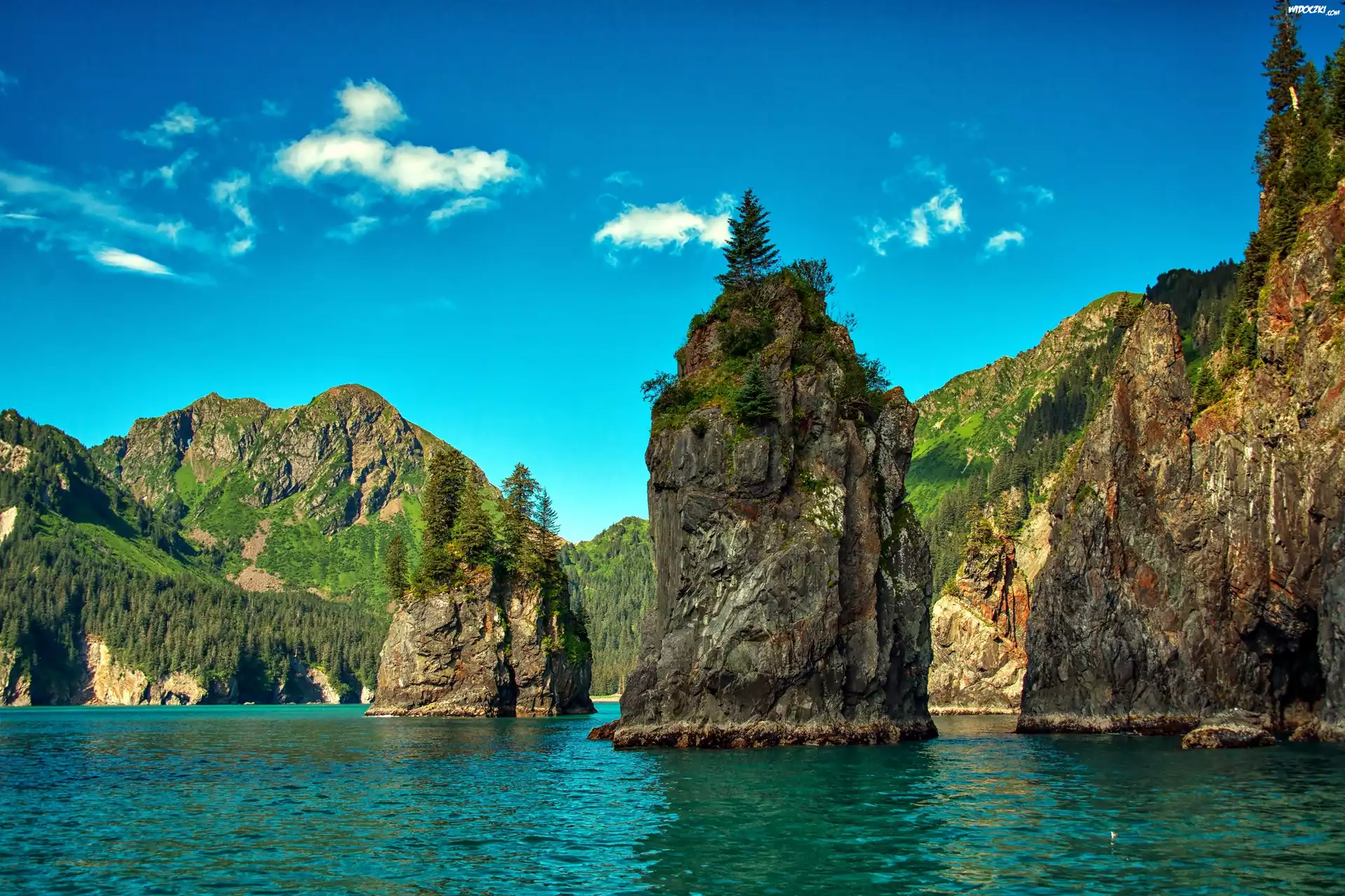 Zdjęcia, Góry, Skały, Las, Rzeka, Alaska