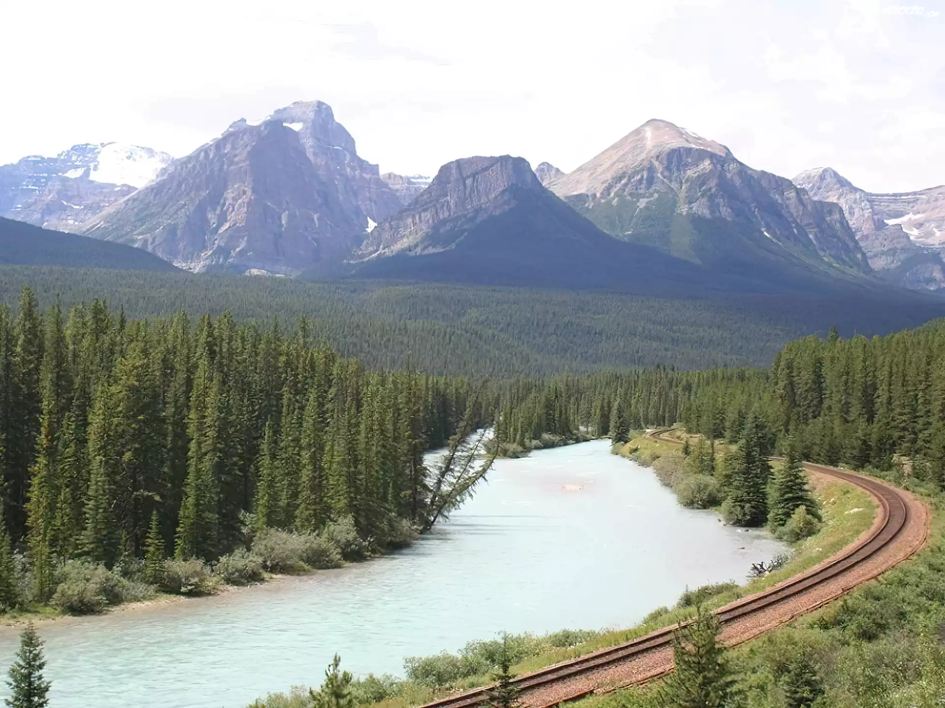 Zdjęcia, Góry, Las, Rzeka, Tory kolejowe