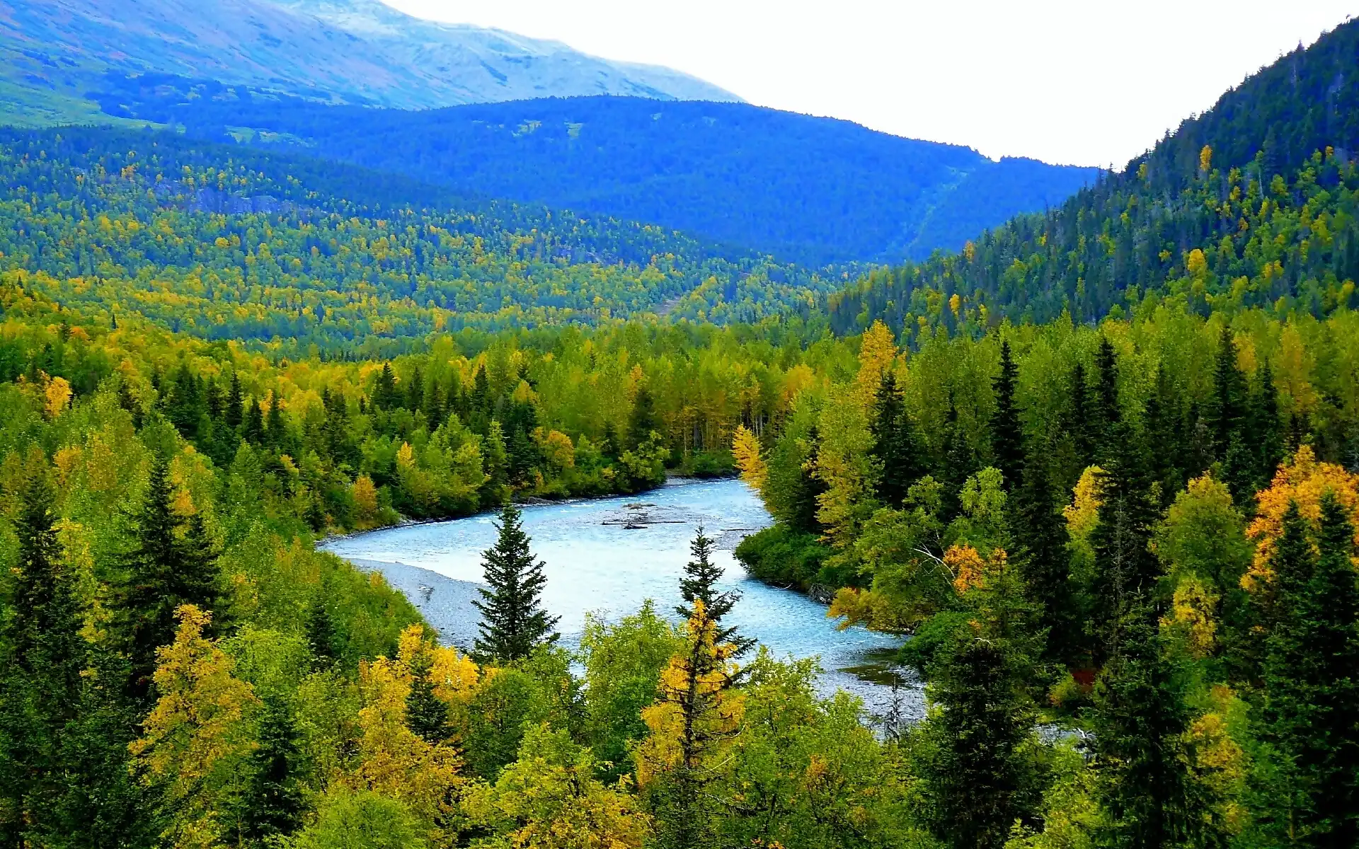 Zdjęcia, Góry, Lasy, Rzeka, Alaska