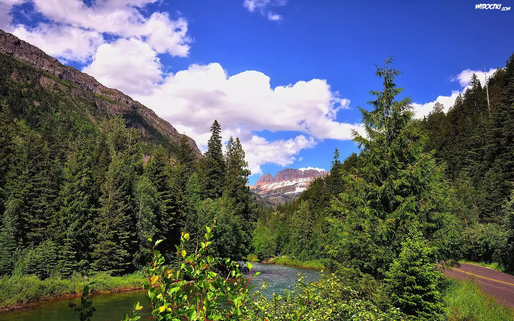 Zdjęcia, Góry, Lasy, Rzeka, Droga
