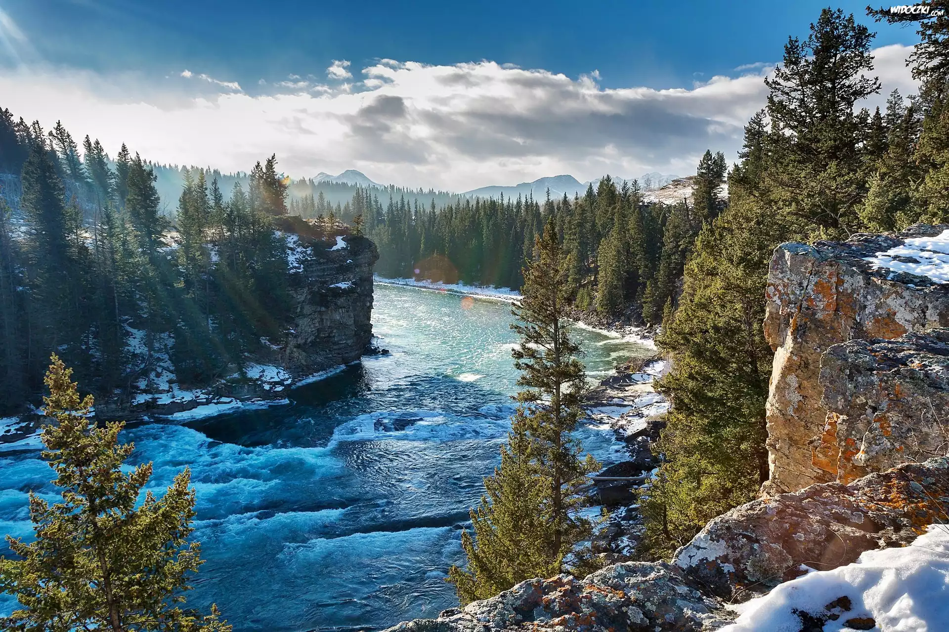 Zdjęcia, Góry, Lasy, Rzeka, Kanada