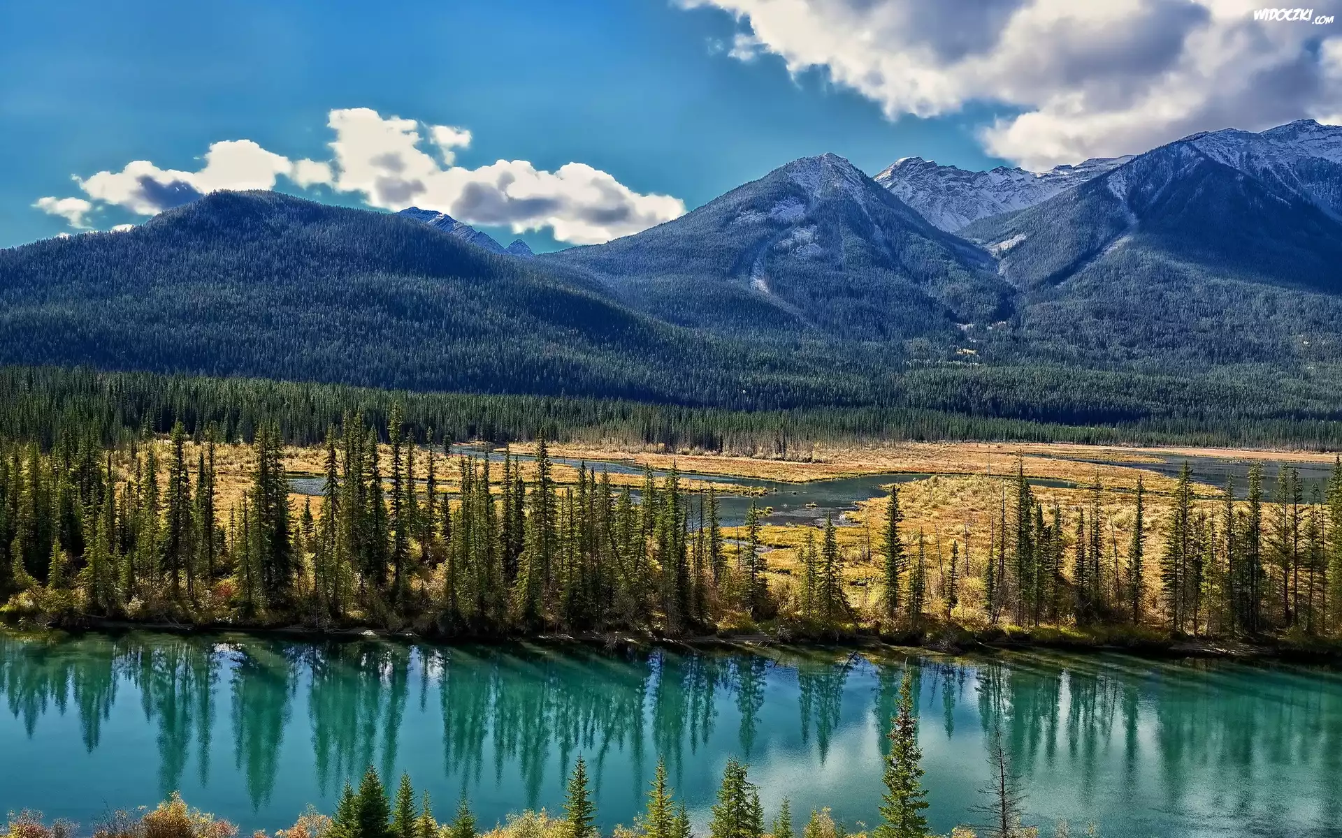 Zdjęcia, Góry, Lasy, Rzeka, Rozlewisko