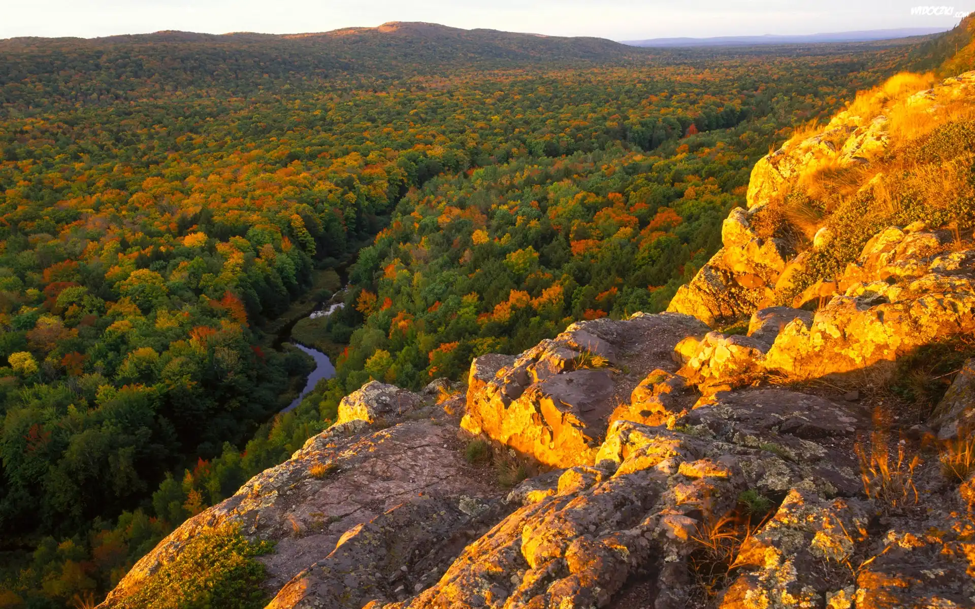 Zdjęcia, Góry, Lasy, Rzeka, Skała