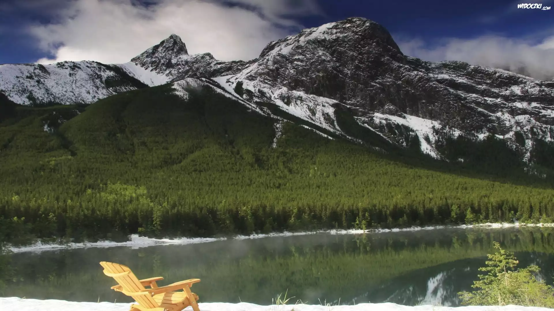 Zdjęcia, Góry, Ośnieżone, Rzeka, Lasy