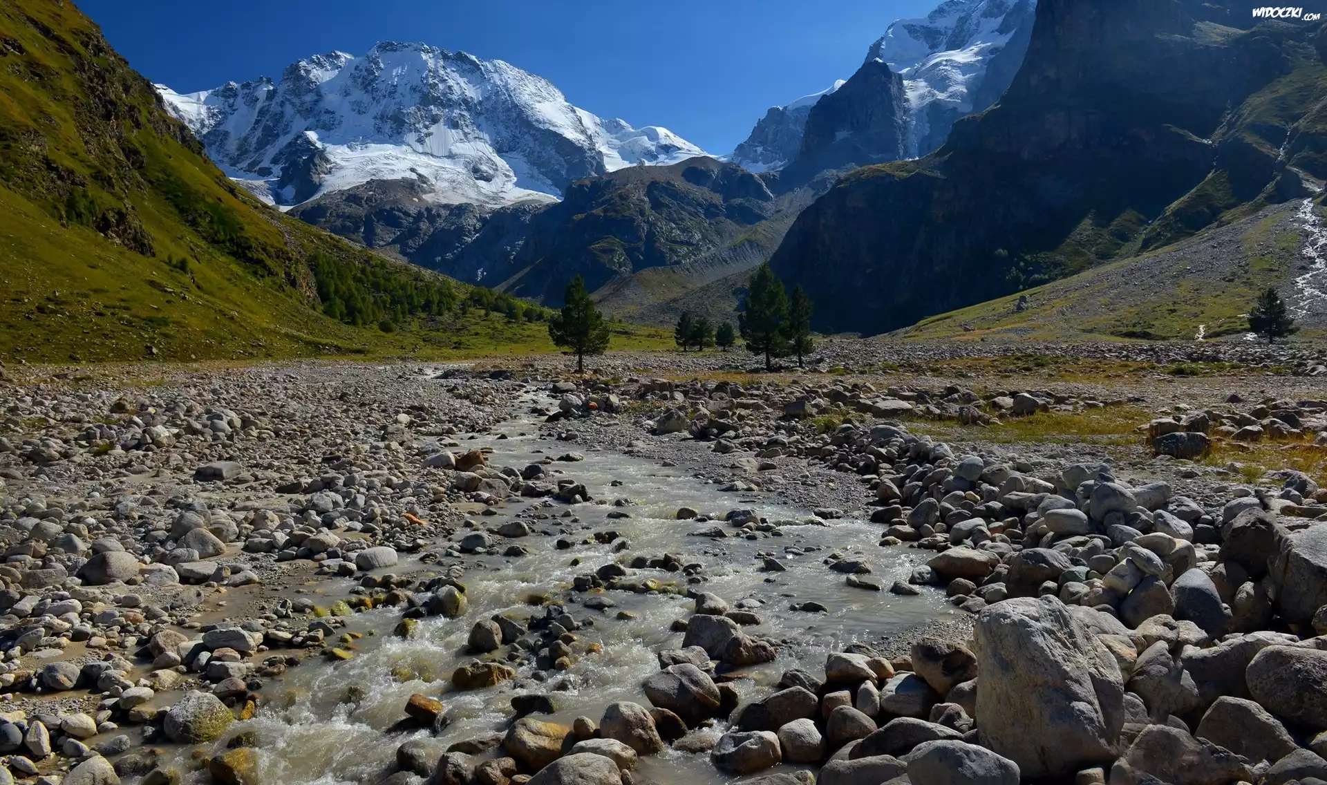 Zdjęcia, Góry, Kamienie, Potok, Rzeka, Drzewa