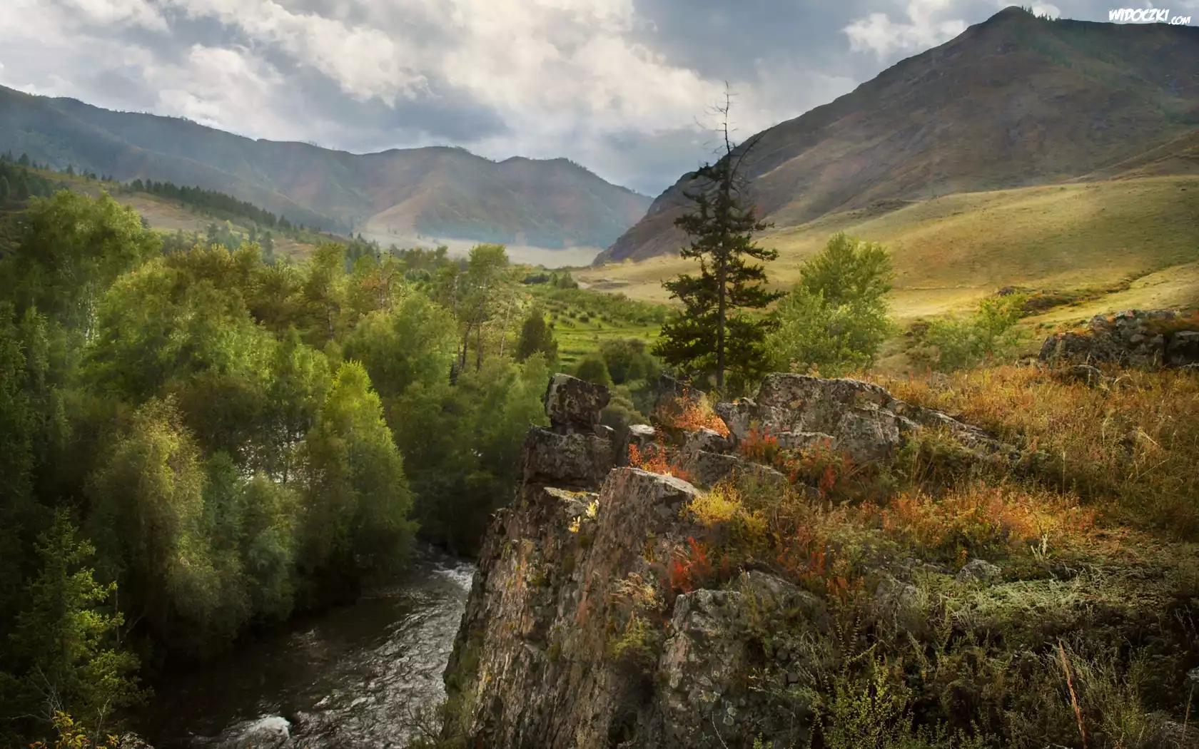 Zdjęcia, Góry, Skały, Rzeka, Las