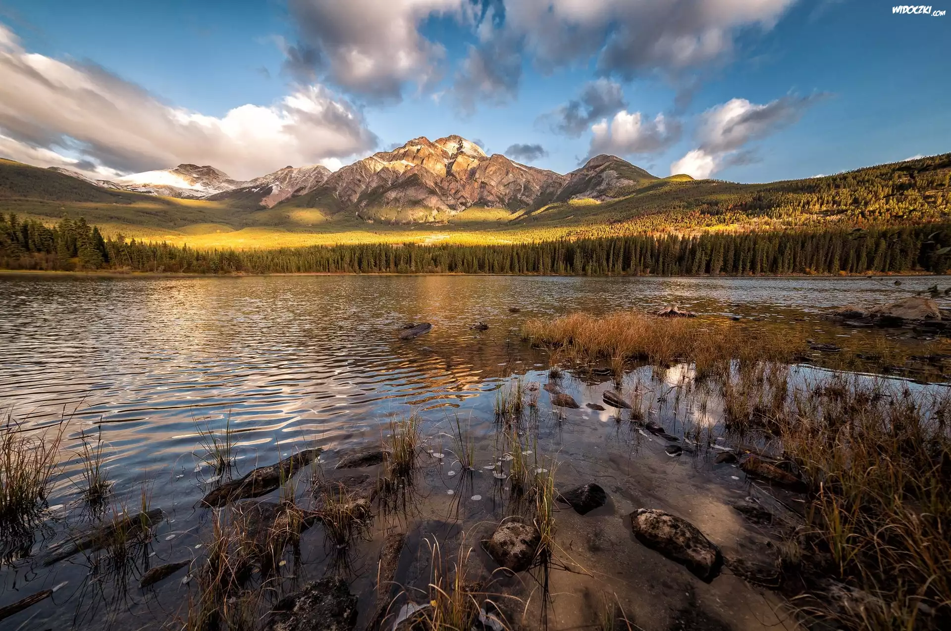 Zdjęcia, Rzeka, Góry, Trawy