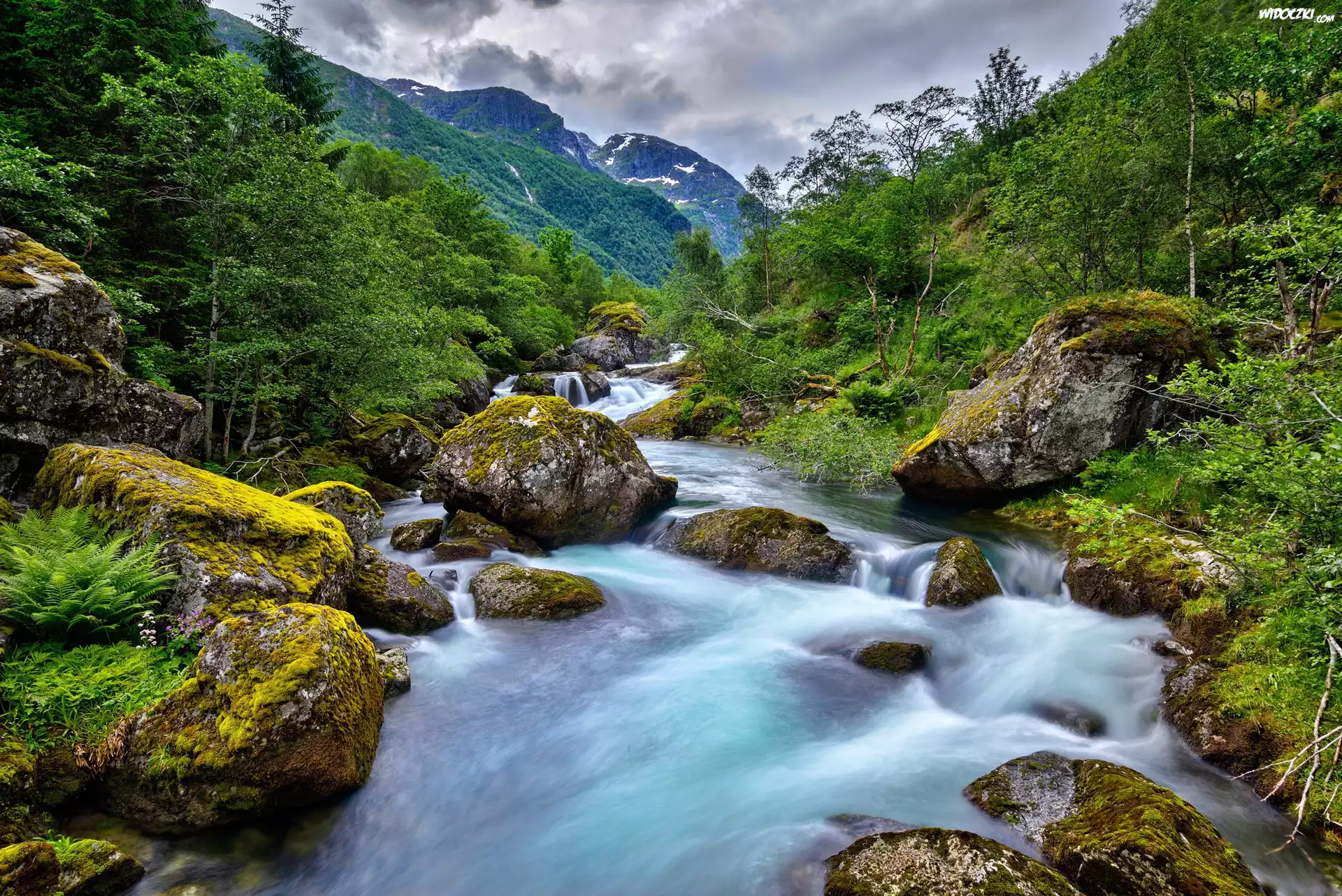 Zdjęcia, Góry, Drzewa, Wzgórza, Rzeka, Kamienie