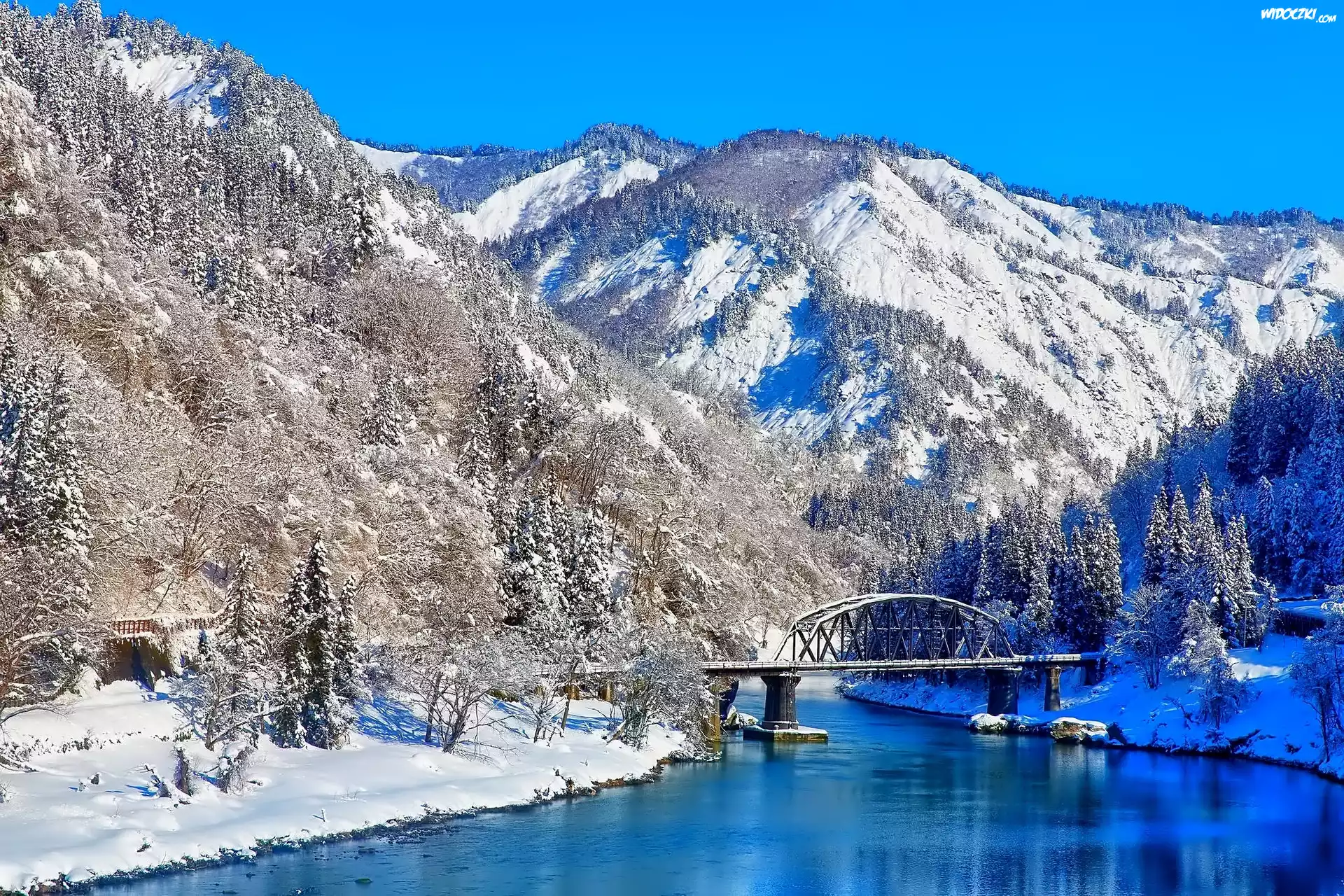 Zdjęcia, Góry, Zima, Rzeka, Most