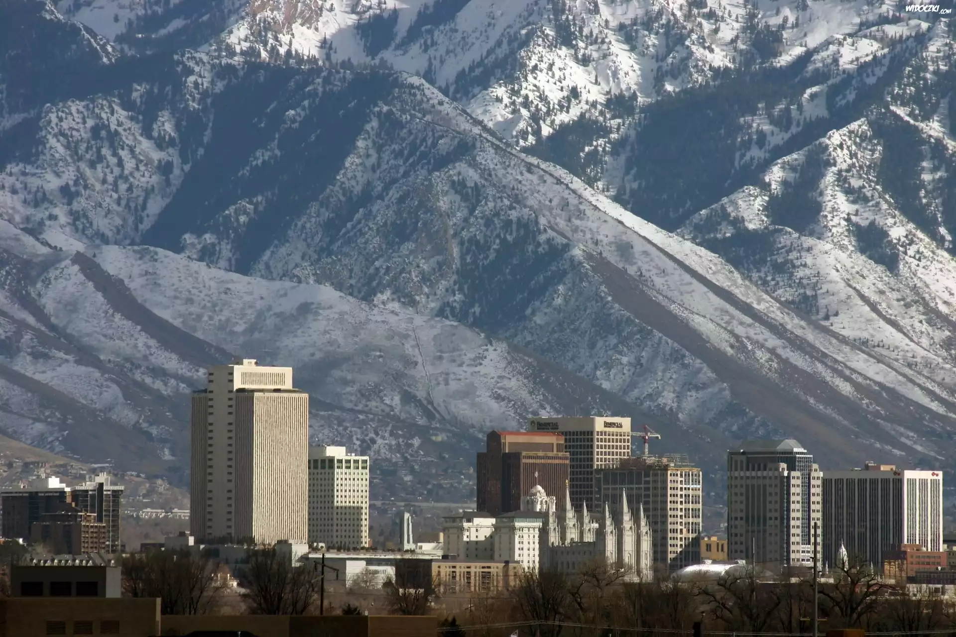 Zdjęcia, Stany Zjednoczone, Salt Lake City, Miasto, Drapacze Chmur, Góry