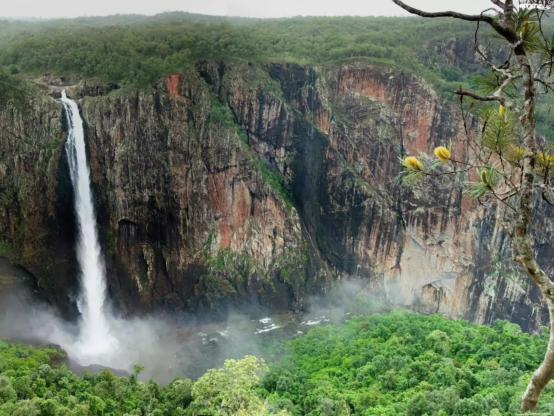 Zdjęcia, Góry, Wodospad, Samotne, Drzewko
