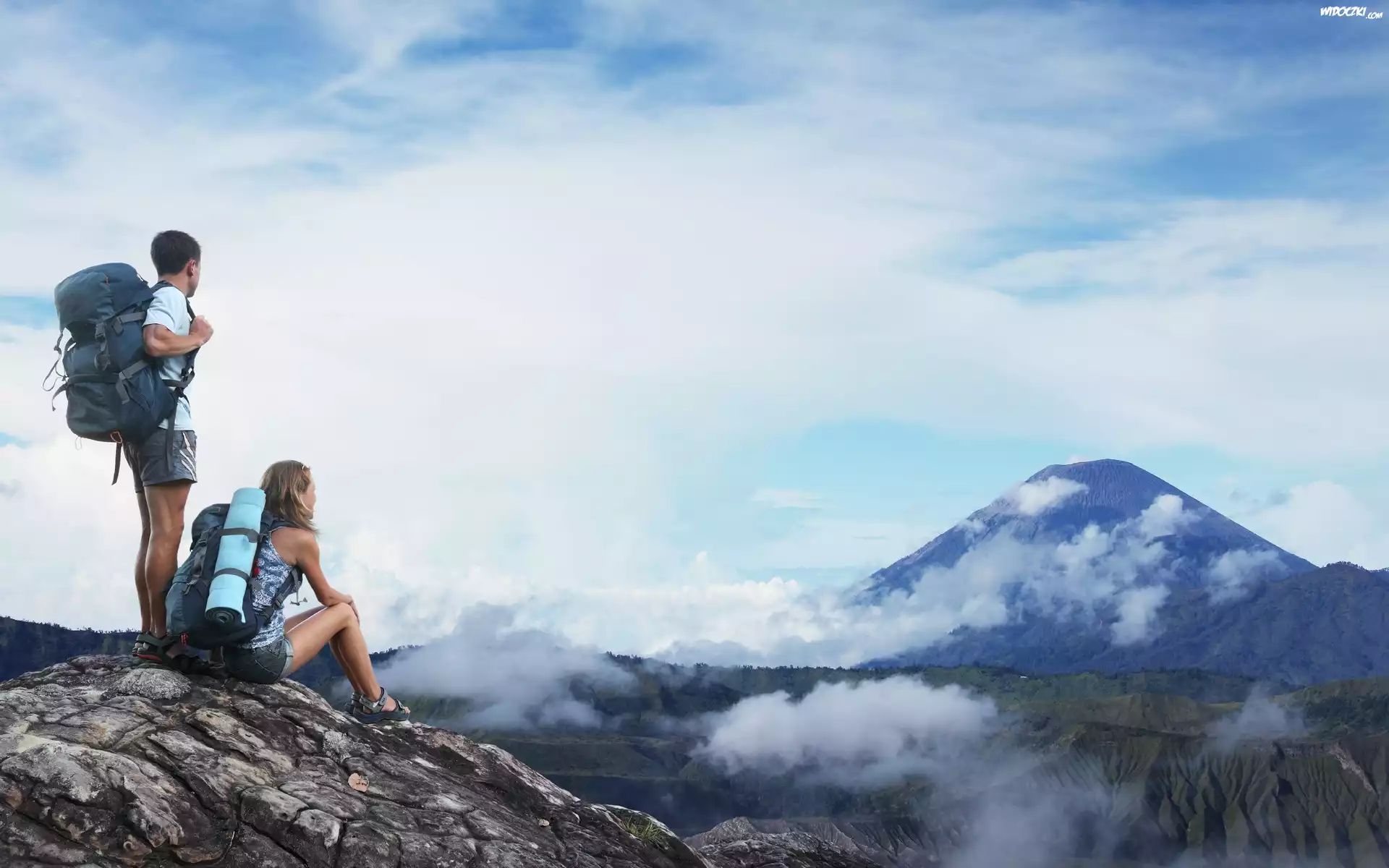 Zdjęcia, Góry, Chmury, Skały, Turyści