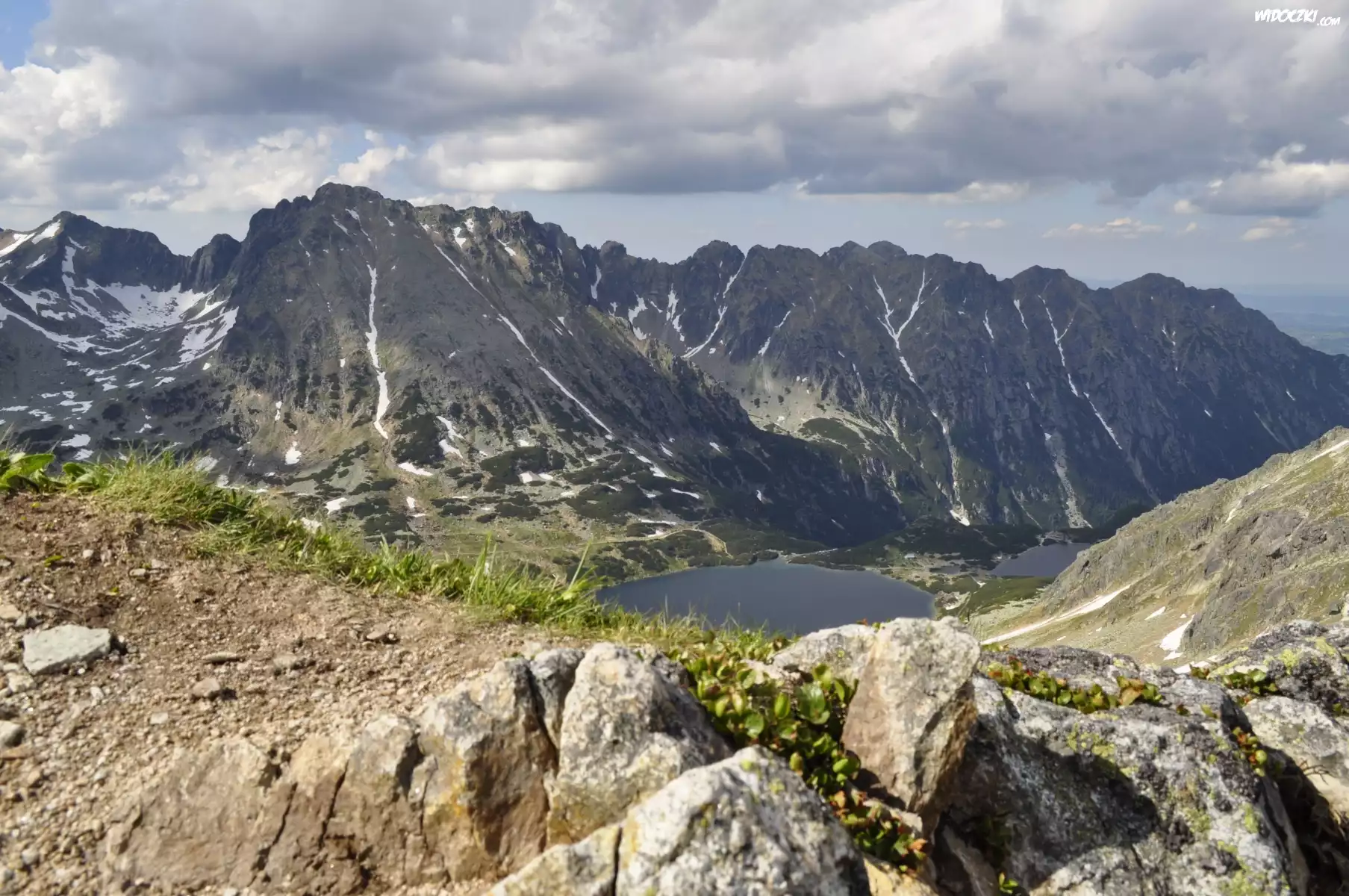 Zdjęcia, Góry, Jezioro, Skały, Chmury