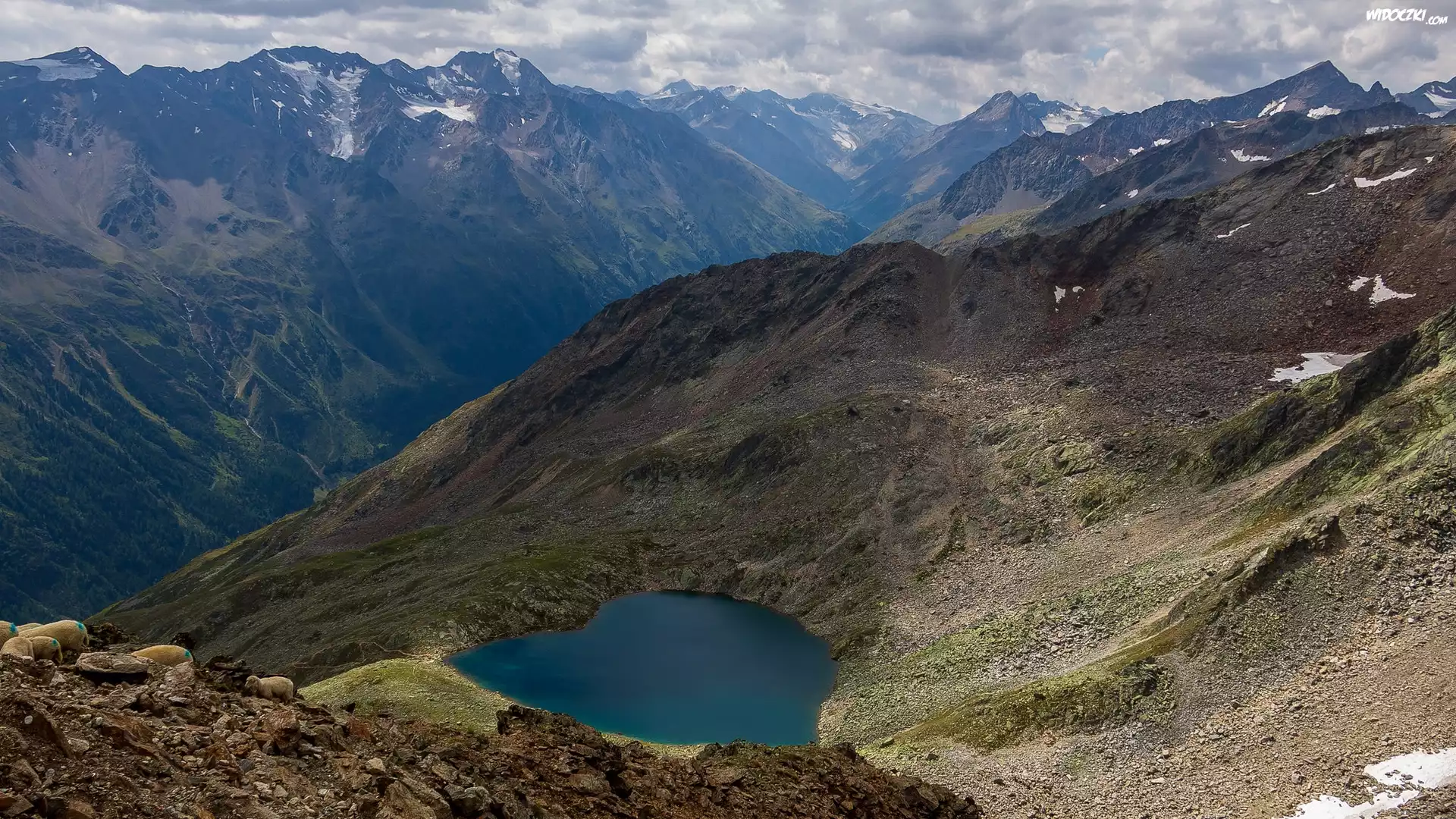 Zdjęcia, Góry, Jezioro, Skały, Owce