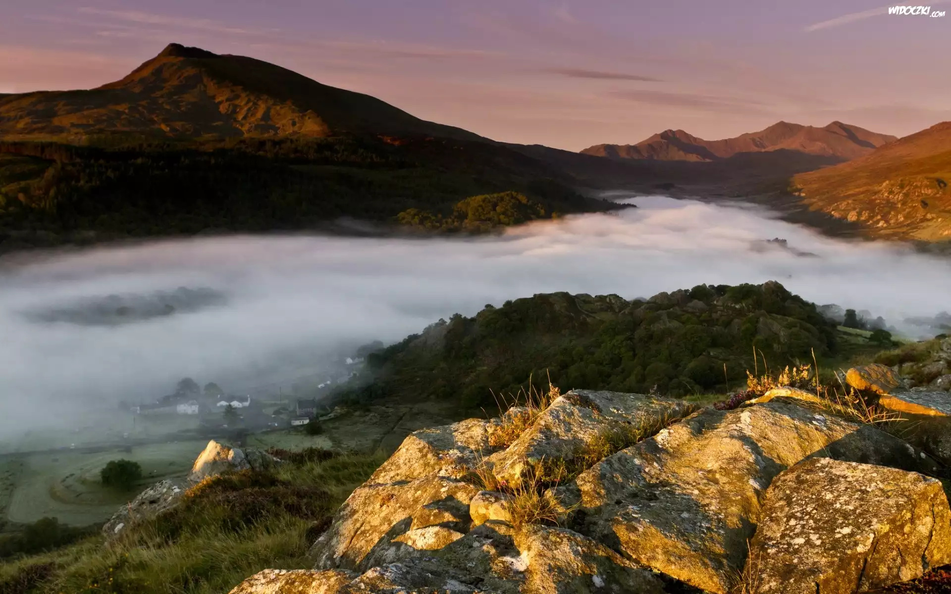 Zdjęcia, Góry, Lasy, Skały, Mgła