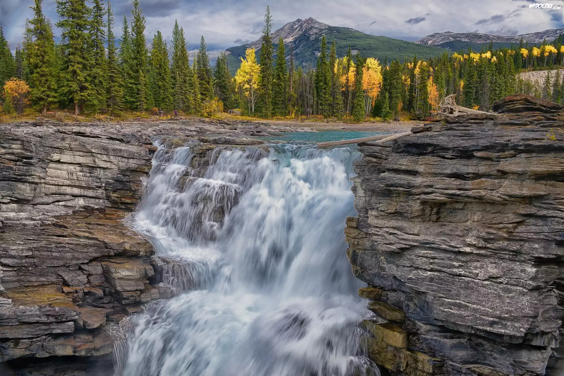 Zdjęcia, Góry, Lasy, Skały, Wodospad