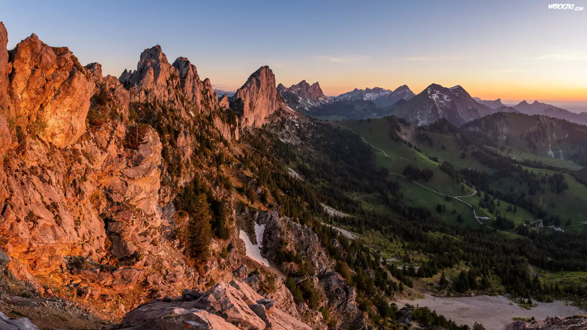 Zdjęcia, Góry, Rozświetlone, Szczyty, Skały, Dolina