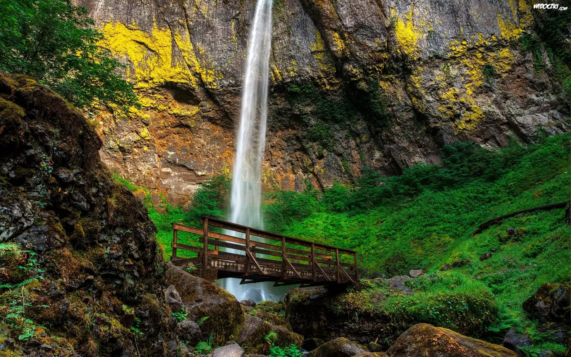 Zdjęcia, Góry, Wodospad, Skały, Most