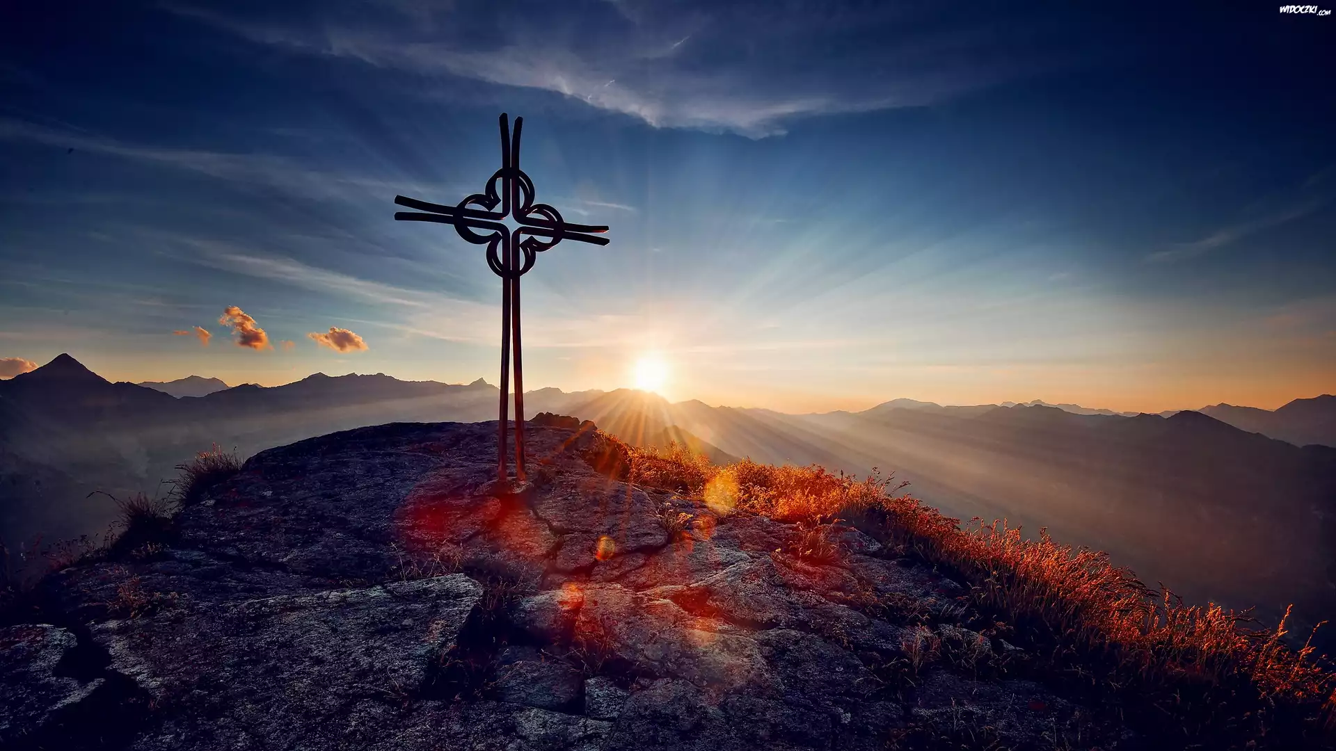 Zdjęcia, Góry, Wschód słońca, Krzyż