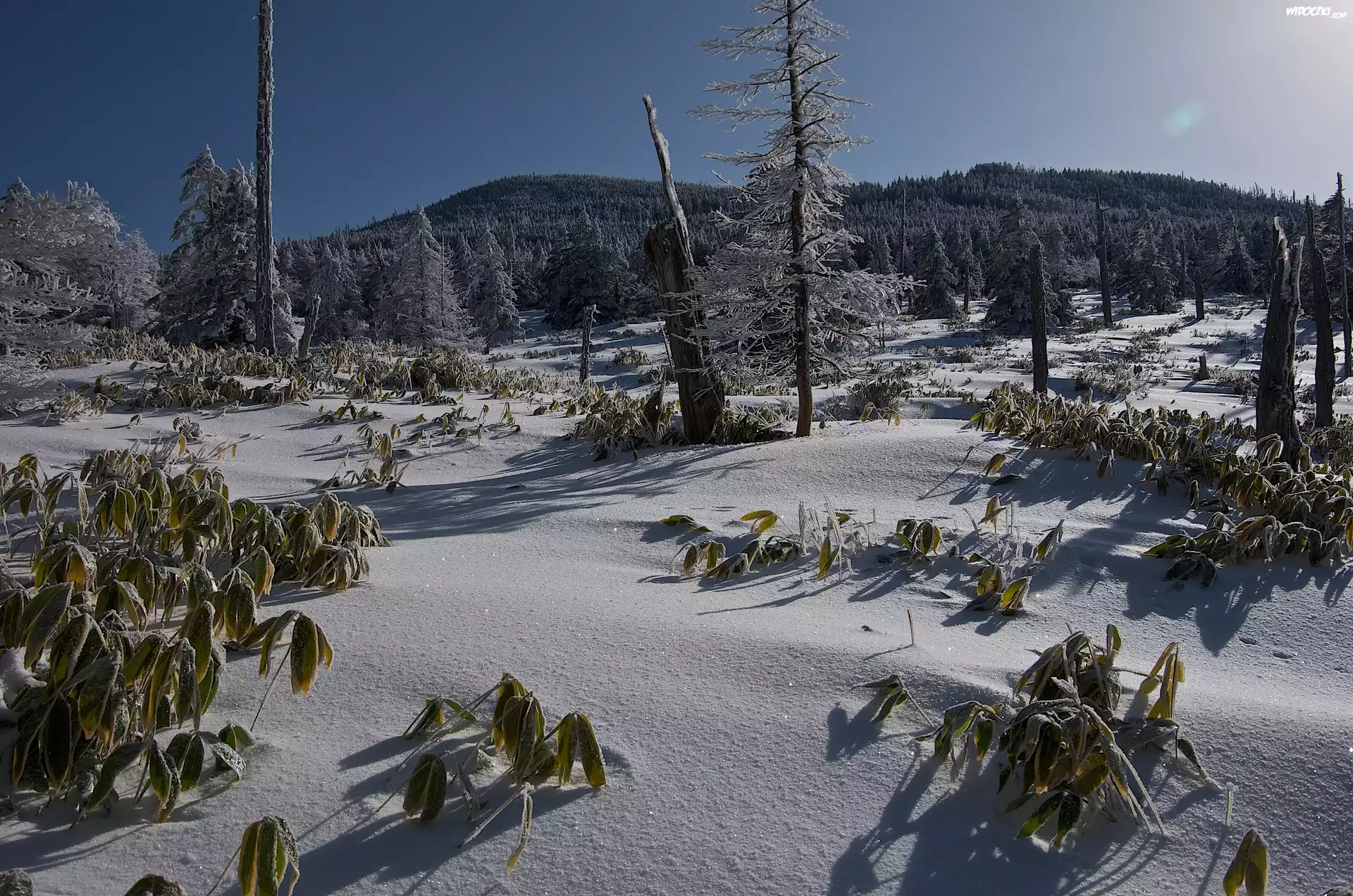 Góry, Lasy, Wschód, Słońca, Śnieg
