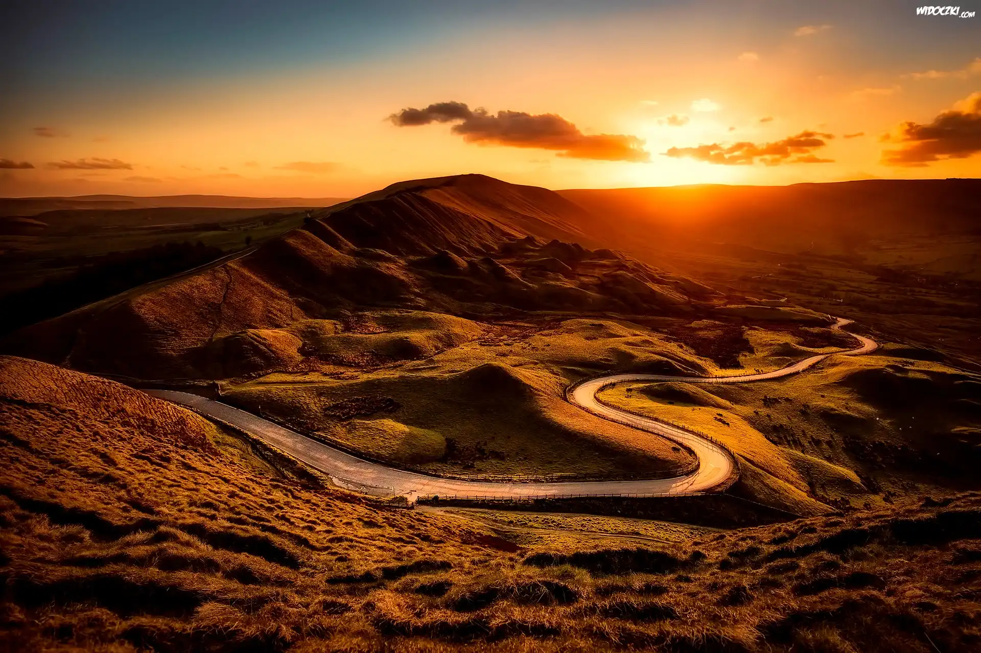 Zdjęcia, Góry, Wzgórza, Wschód słońca, Droga