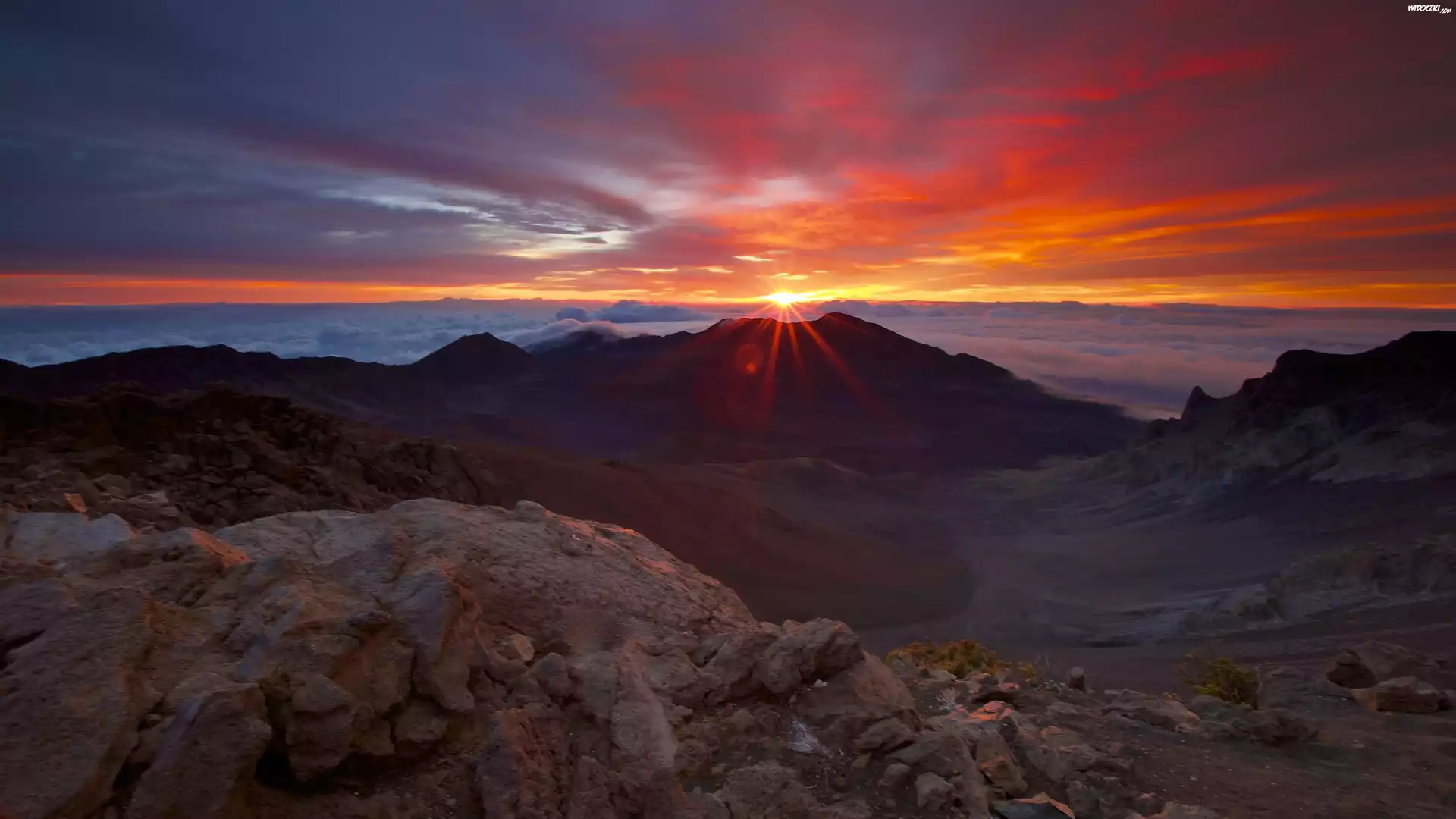 Góry, Zachód Słońca, Chmury