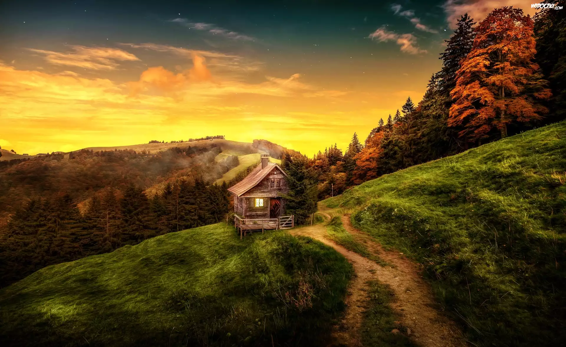 Zdjęcia, Góry, Droga, Zachód Słońca, Dom