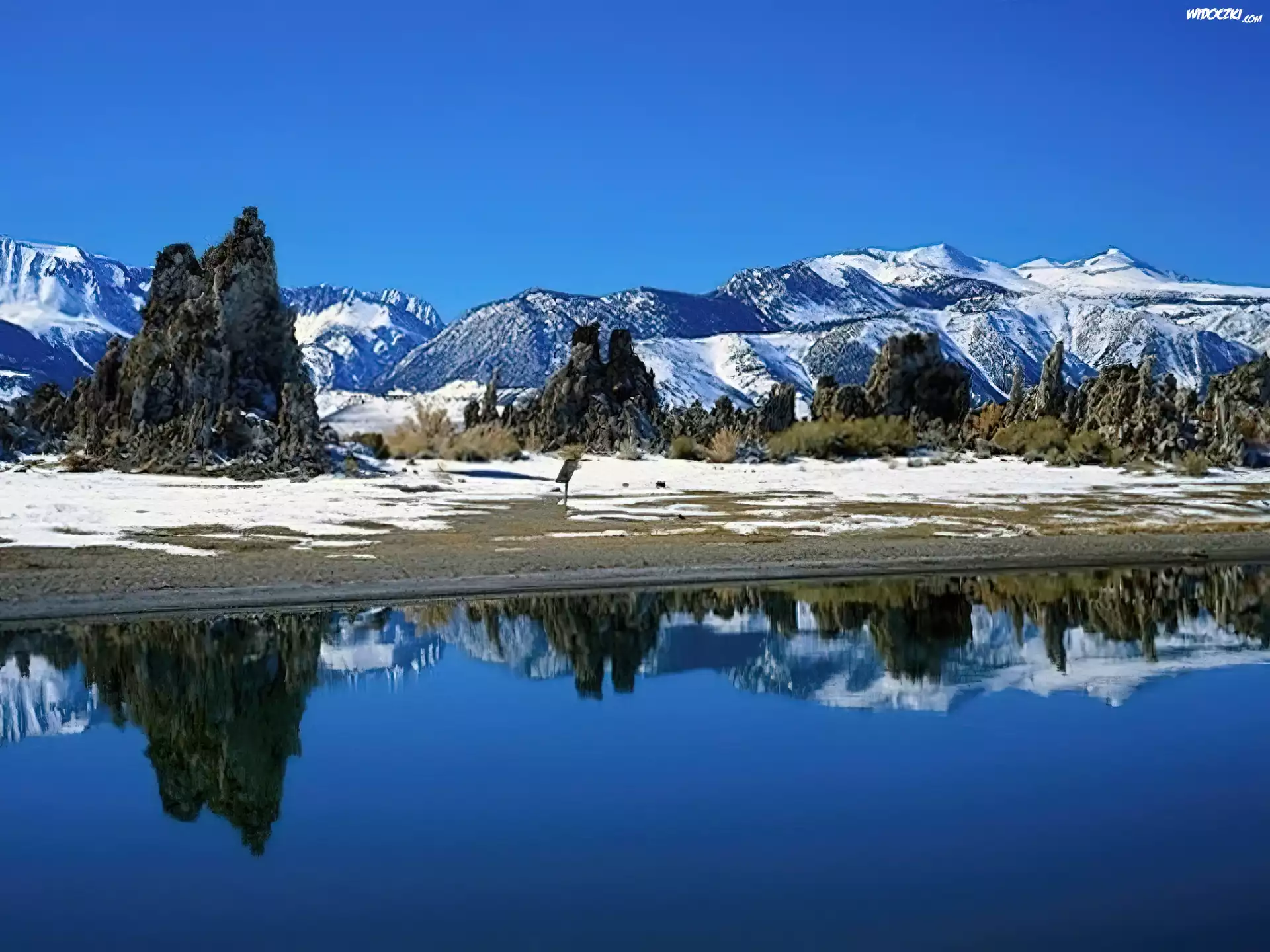 Góry, Jezioro,śnieg, Zima