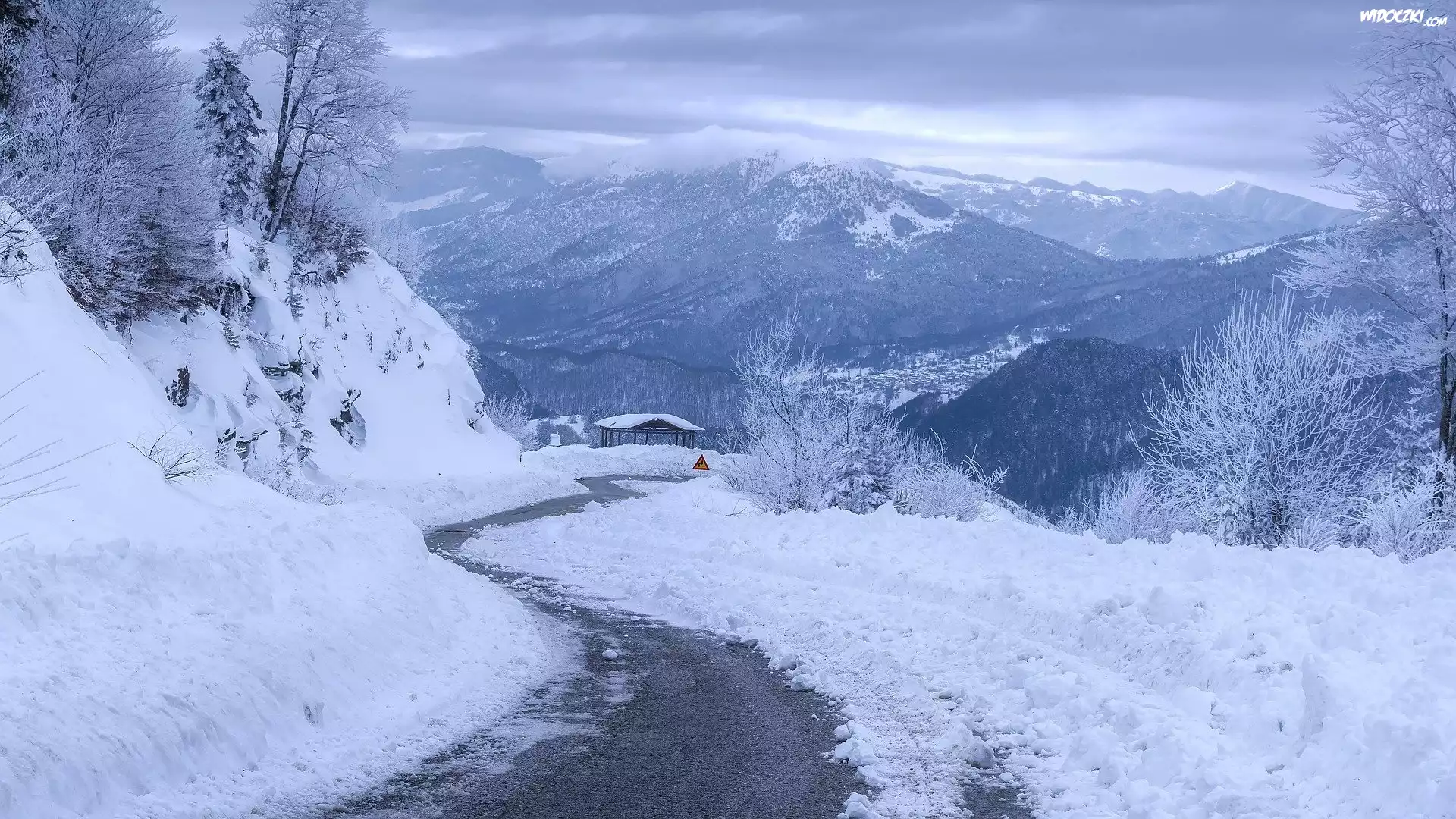 Zima, Góry, Śnieg, Droga, Wzgórze