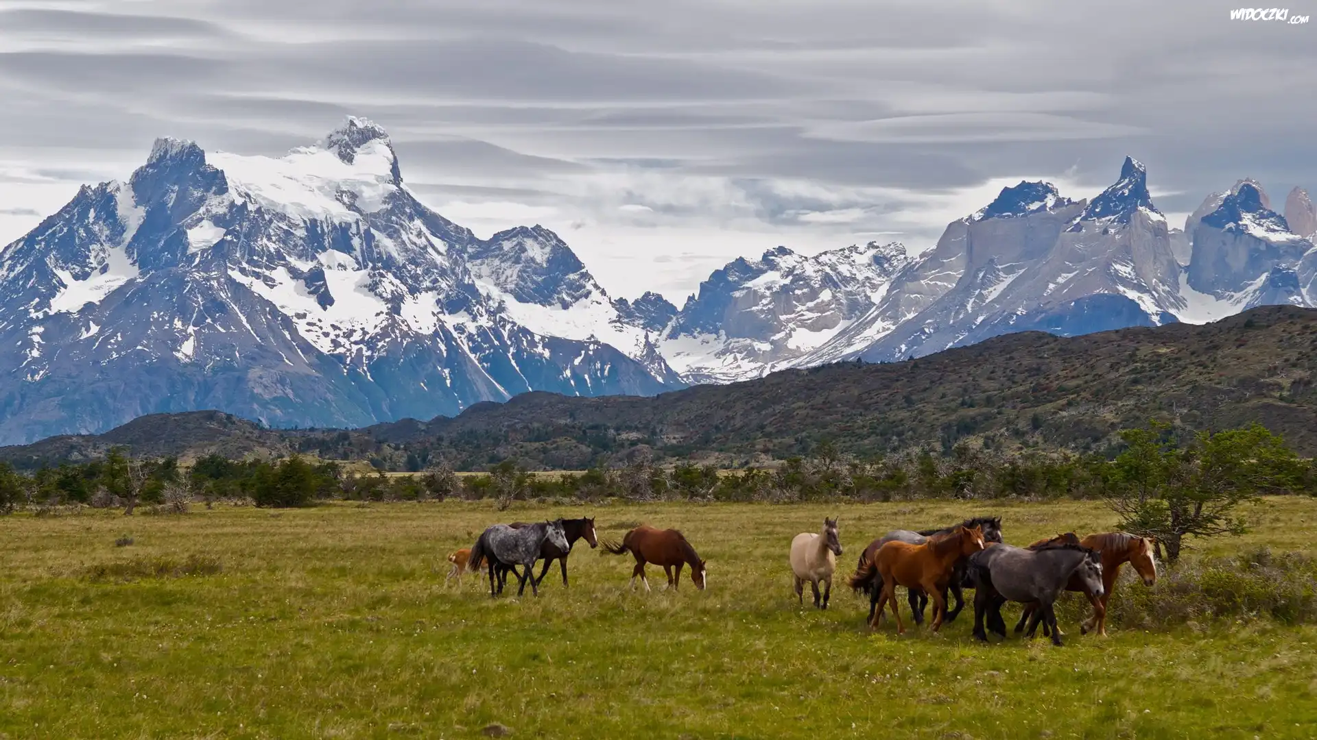 Zdjęcia, Góry, Łąka, Stado, Koni