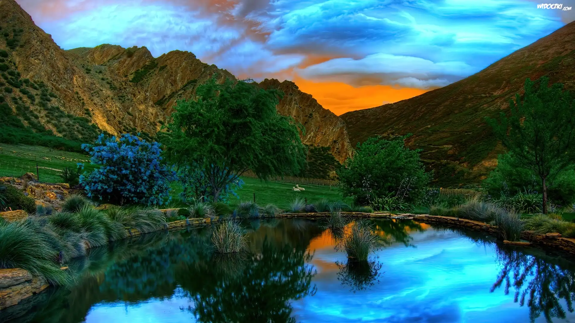Zdjęcia, Staw, Góry, Drzewa