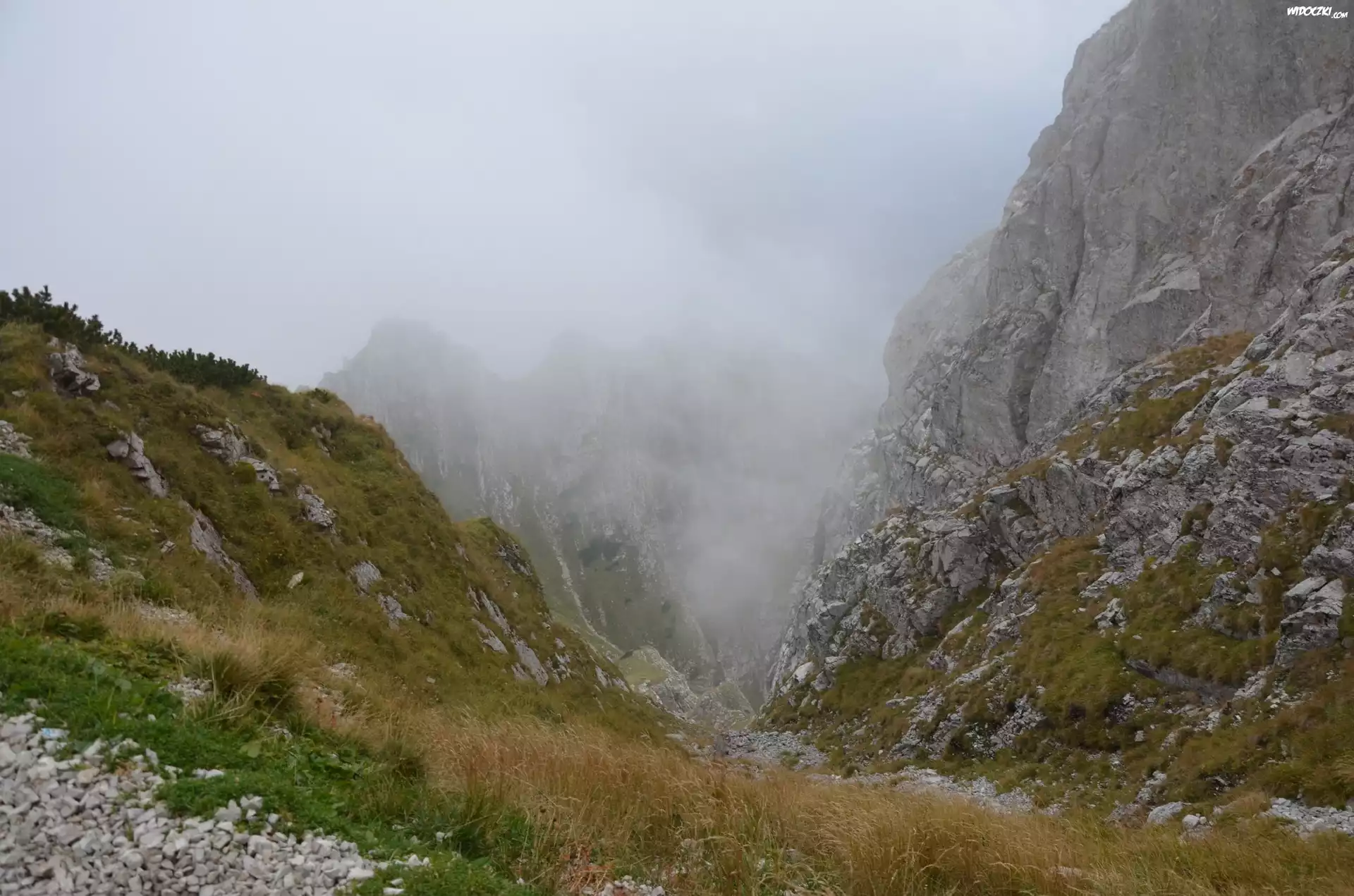 Zdjęcia, Góry, Mgła, Strome, Zejście