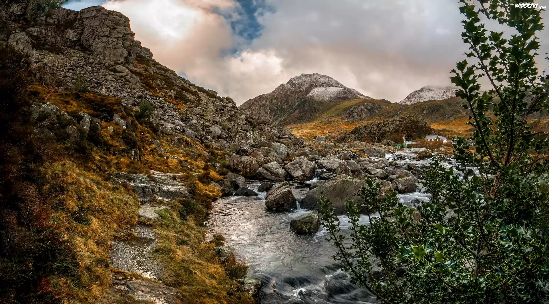 Zdjęcia, Góry, Skały, Kamienie, Strumyk, Drzewo
