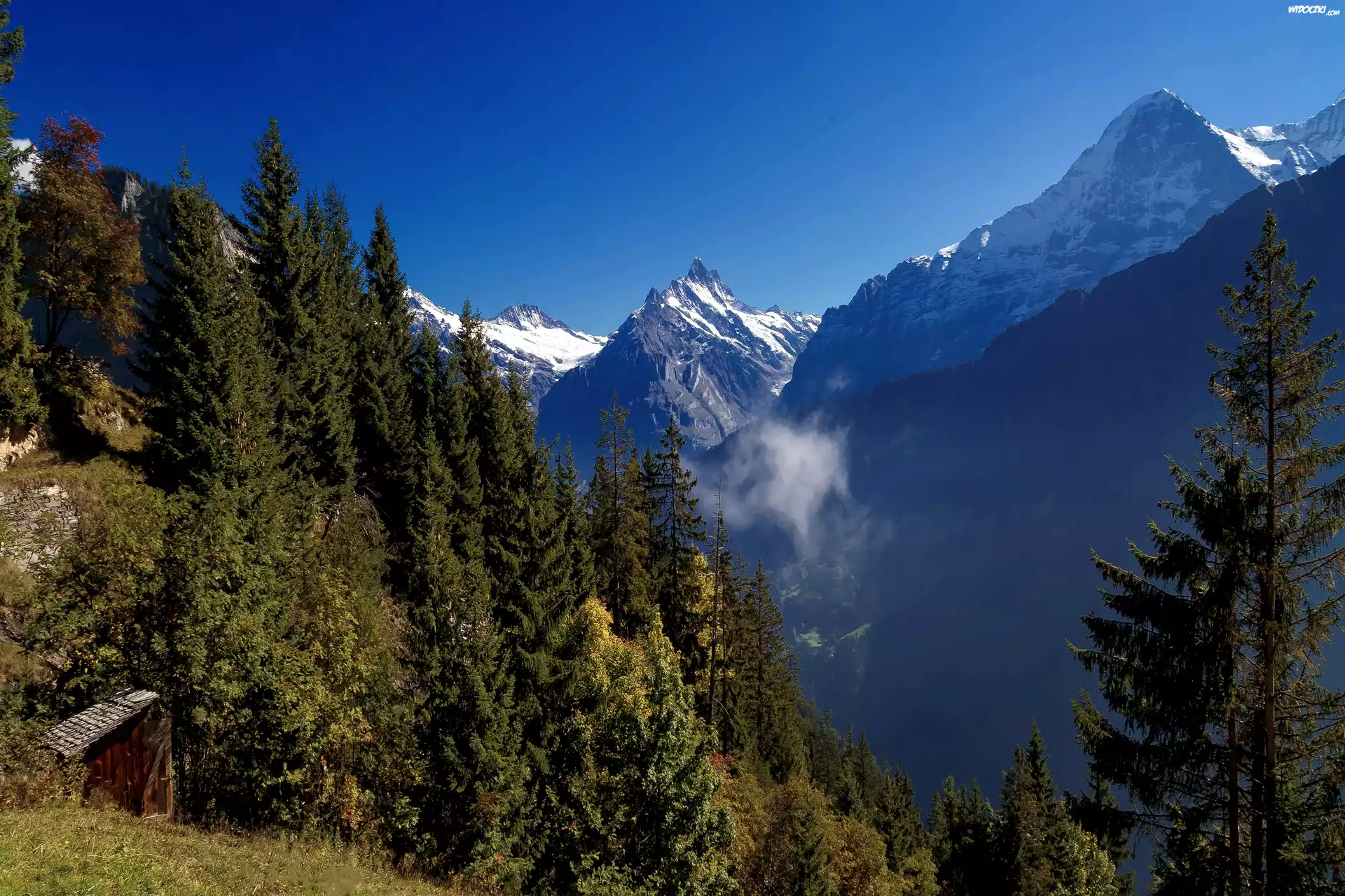 Zdjęcia, Góry, Las, Szałas, Szwajcaria