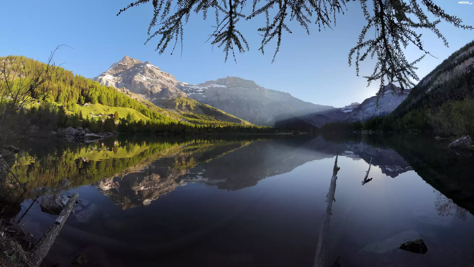 Zdjęcia, Szwajcaria, Góry Alpy Berneńskie, Jezioro Derborence, Drzewa