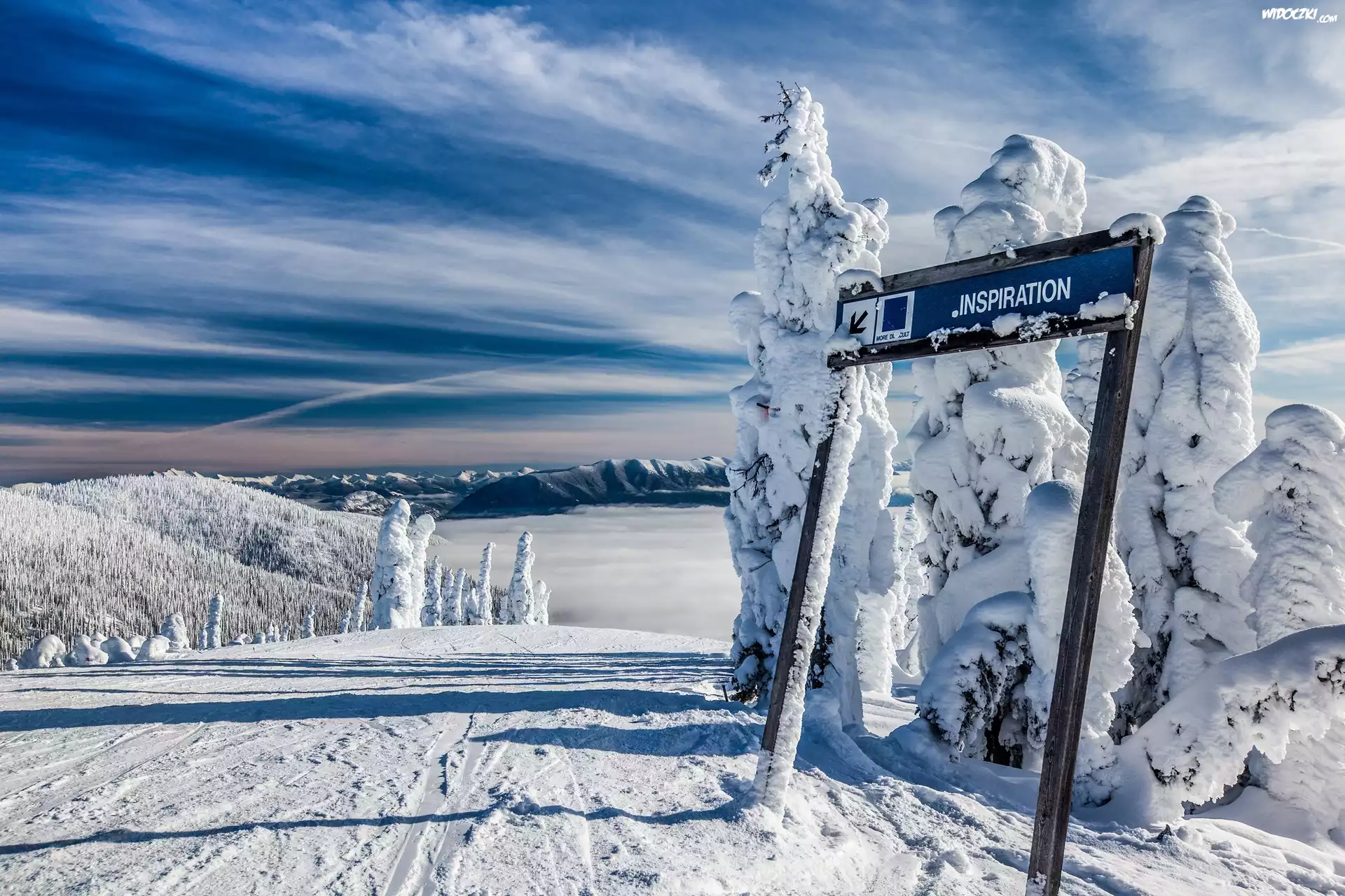 Zdjęcia, Góry, Zima, Tablica, Krajobraz
