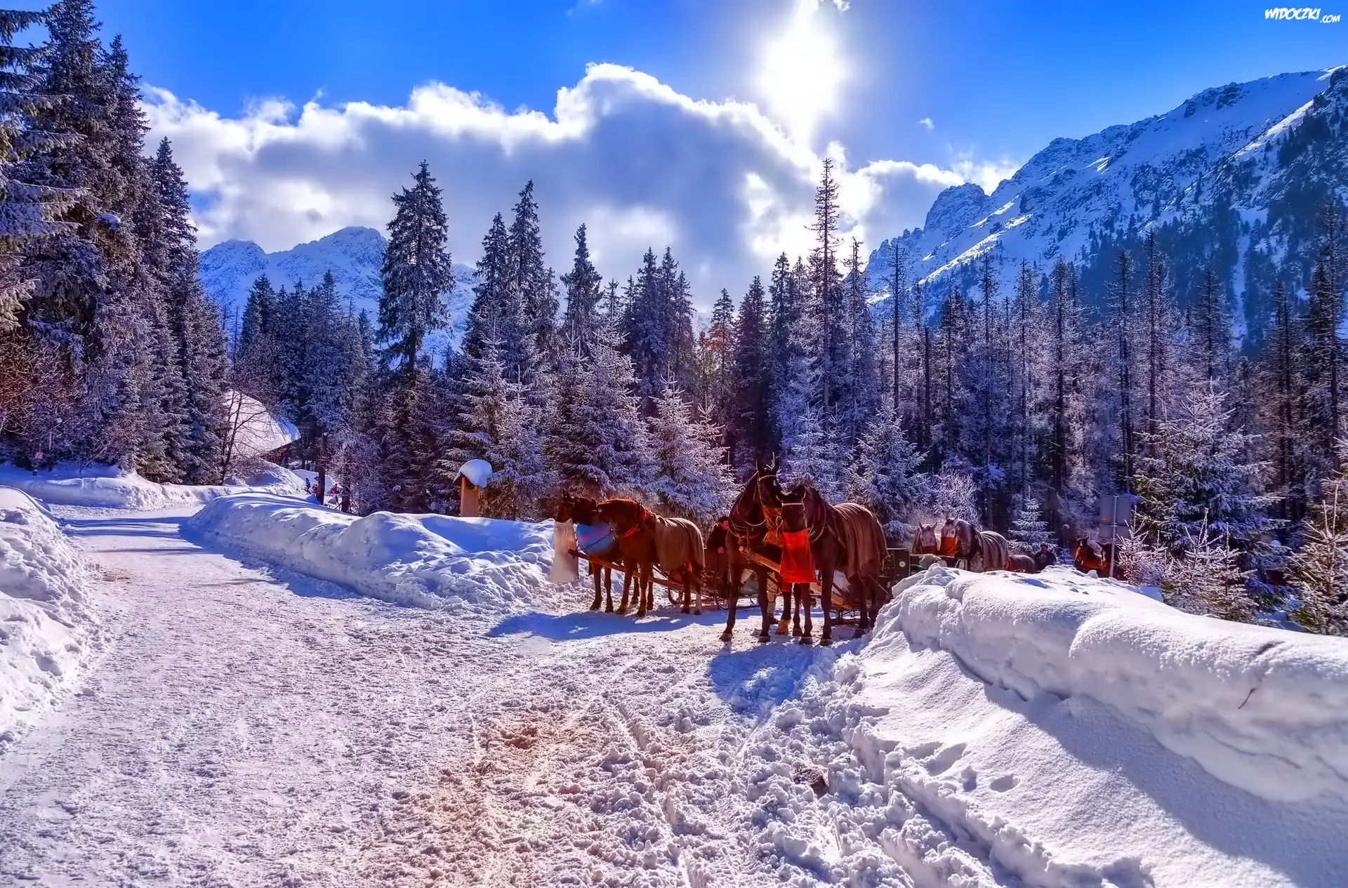 Zdjęcia, Góry, Zima, Konie, Zaprzęg, Tatry, Polska