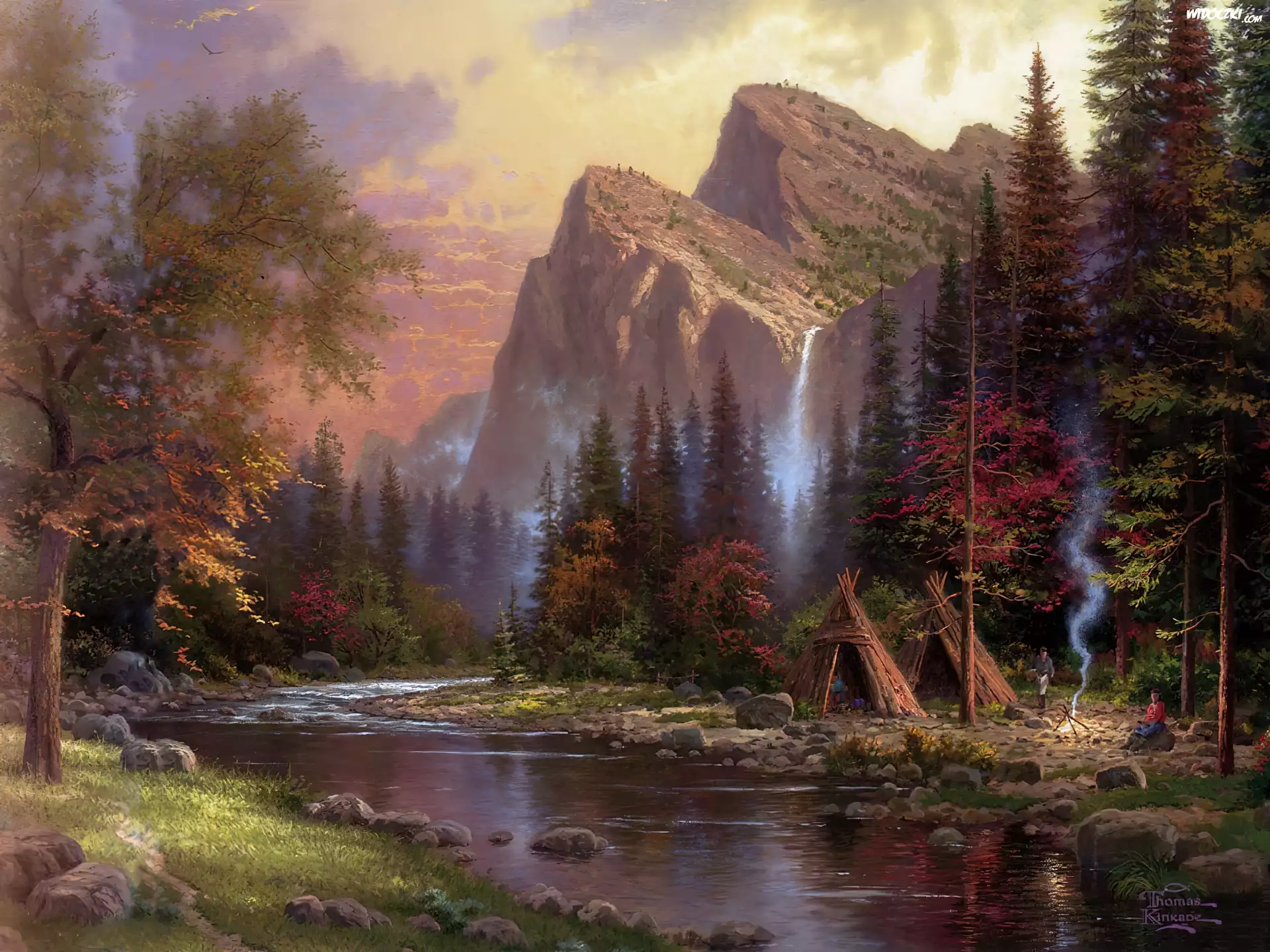 Zdjęcia, Góry, Rzeka, Las, Biwak, Thomas Kinkade