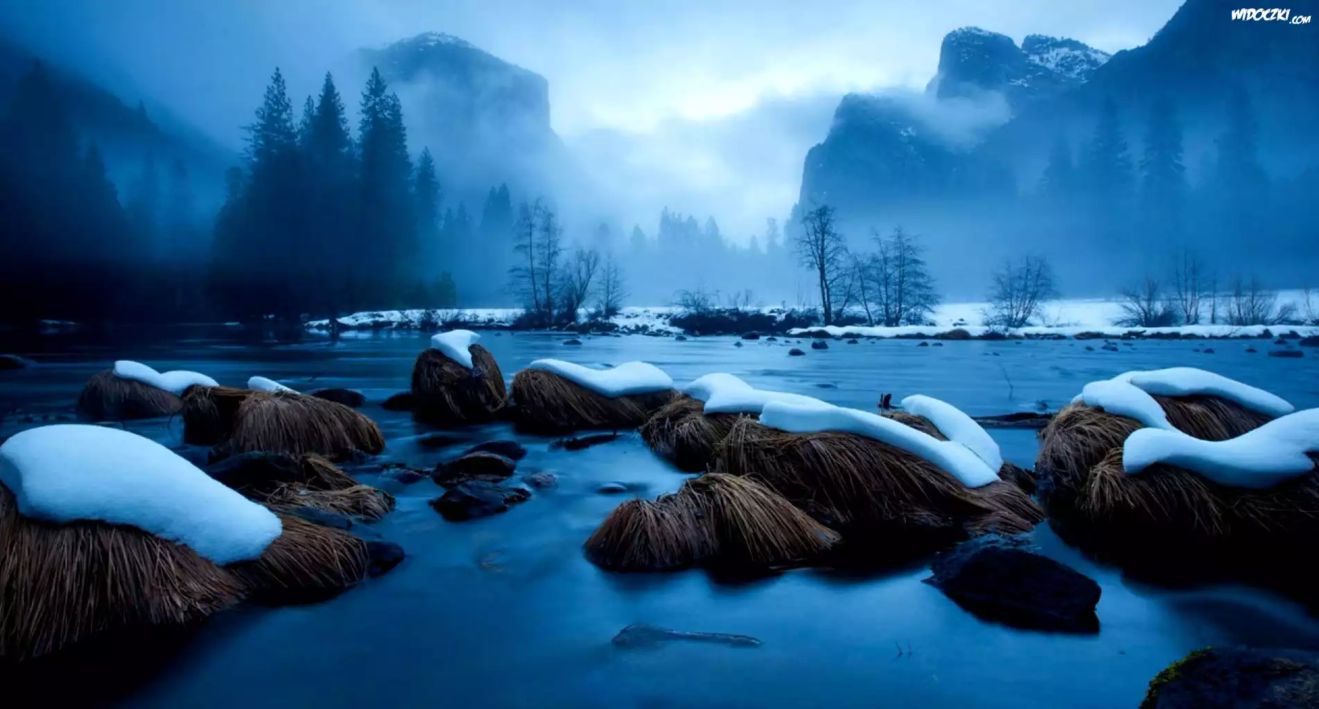 Zdjęcia, Góry, Jezioro, Trawa, Zima