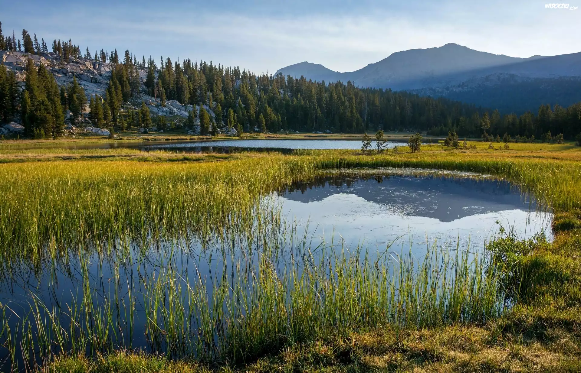 Zdjęcia, Góry, Rozlewiska, Trawa, Świerki