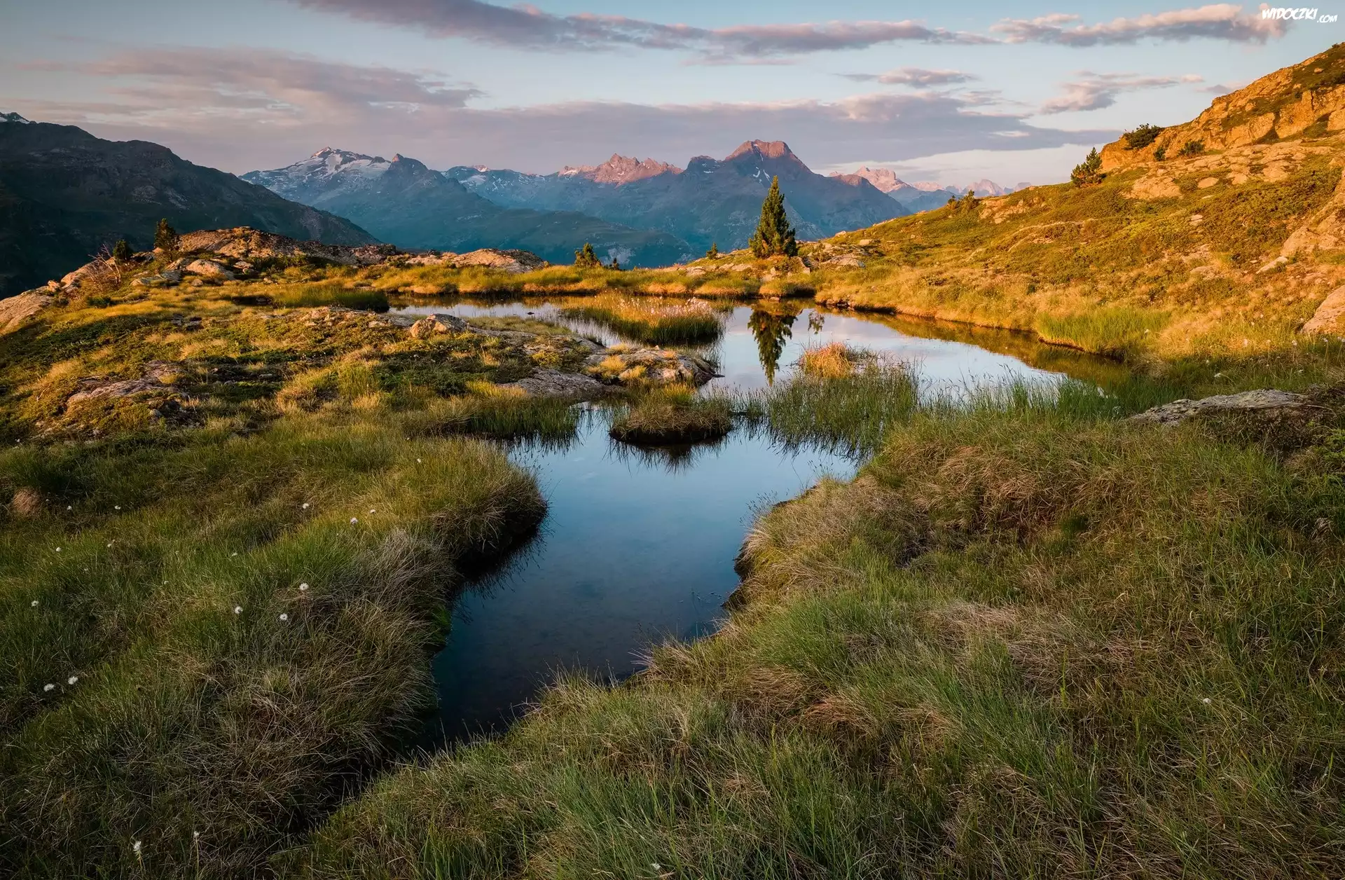 Zdjęcia, Góry, Rzeka, Trawa, Drzewo