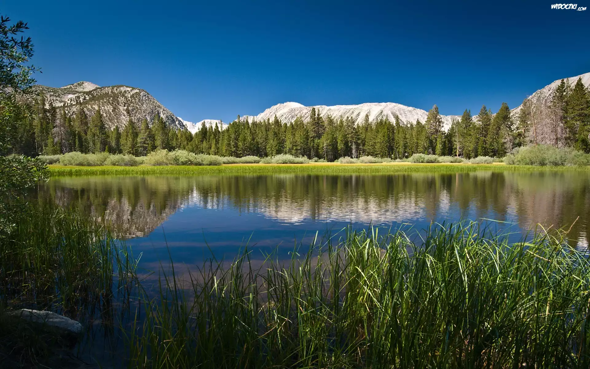 Zdjęcia, Góry, Jezioro, Odbicie, Trzciny, Drzewa