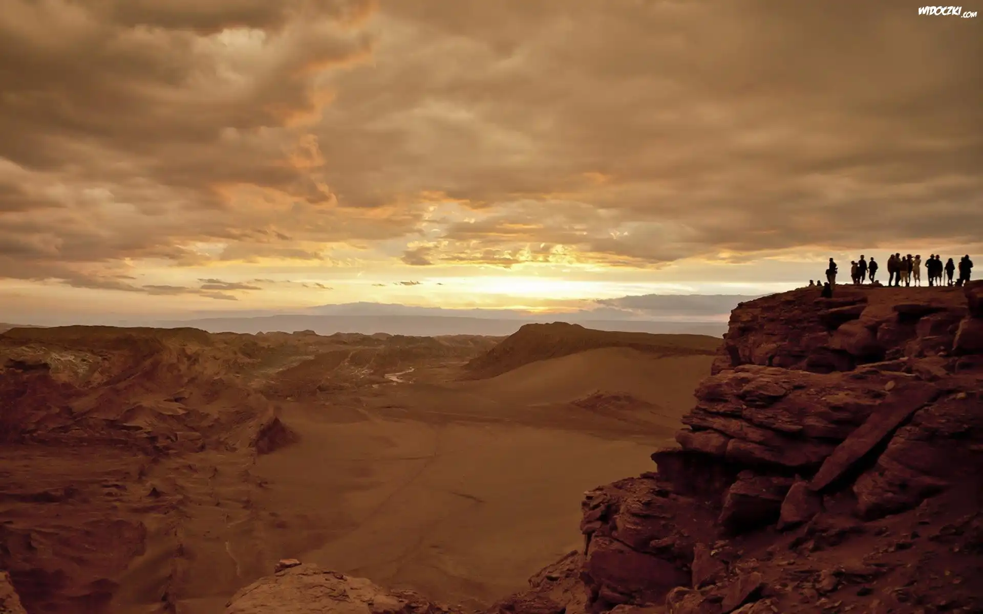 Góry, Niebo, Chmury, Ludzie, Turyści, Widok