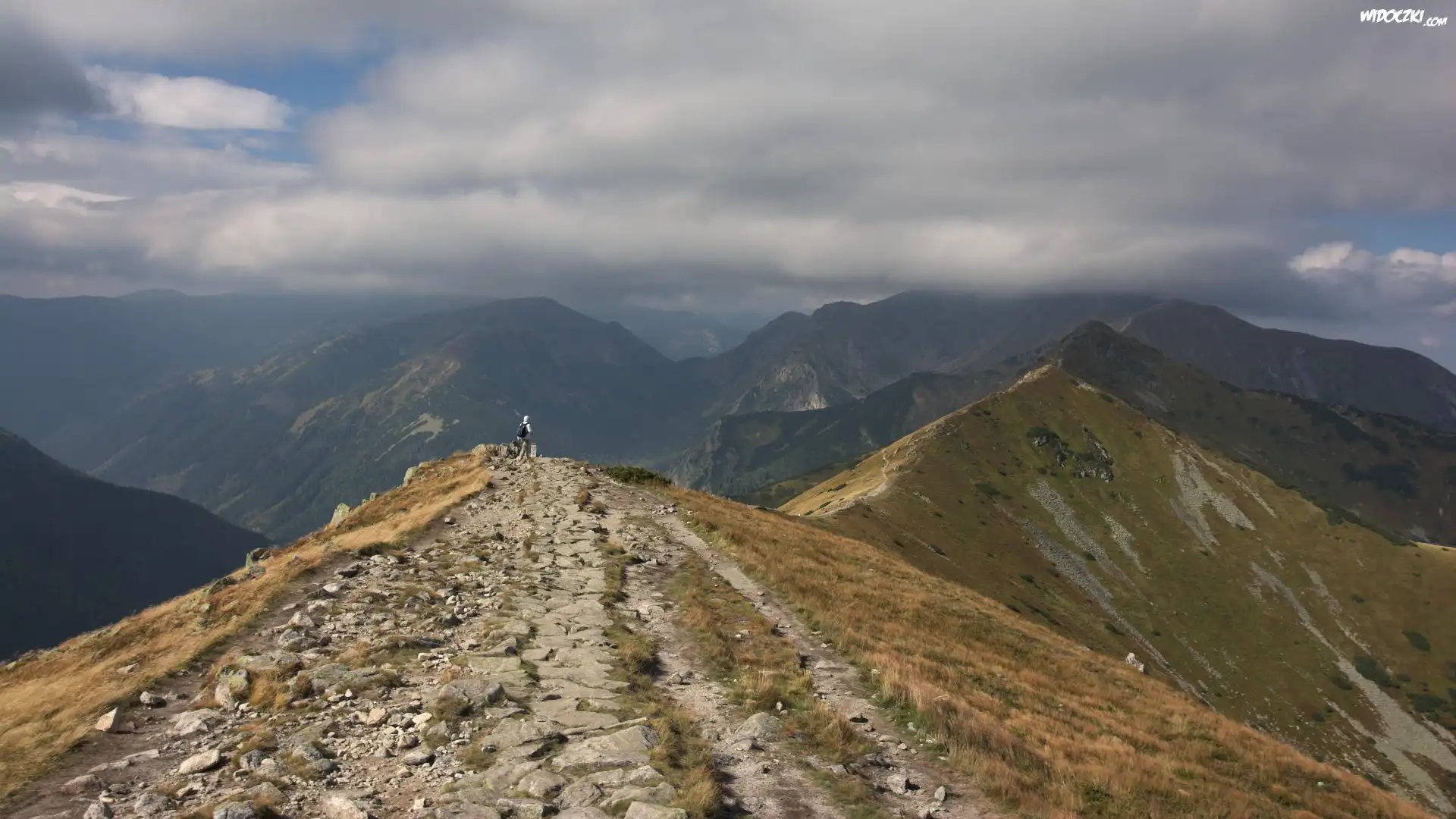 Zdjęcia, Góry, Szczyty, Turysta, Chmury