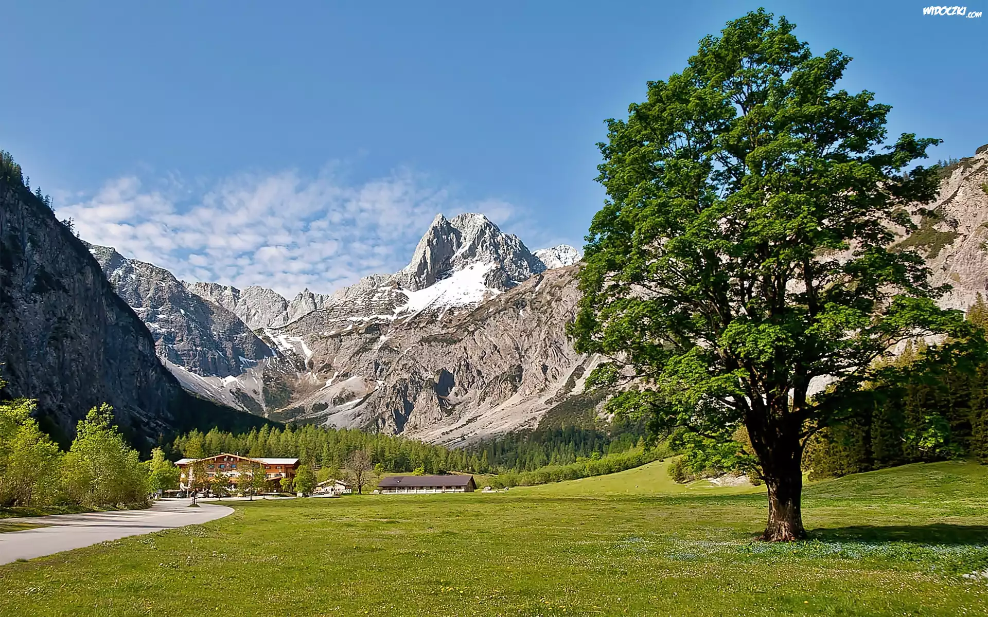Zdjęcia, Tyrol, Góry, Lasy, Łąka, Hotel, Alpengasthof, Gramai