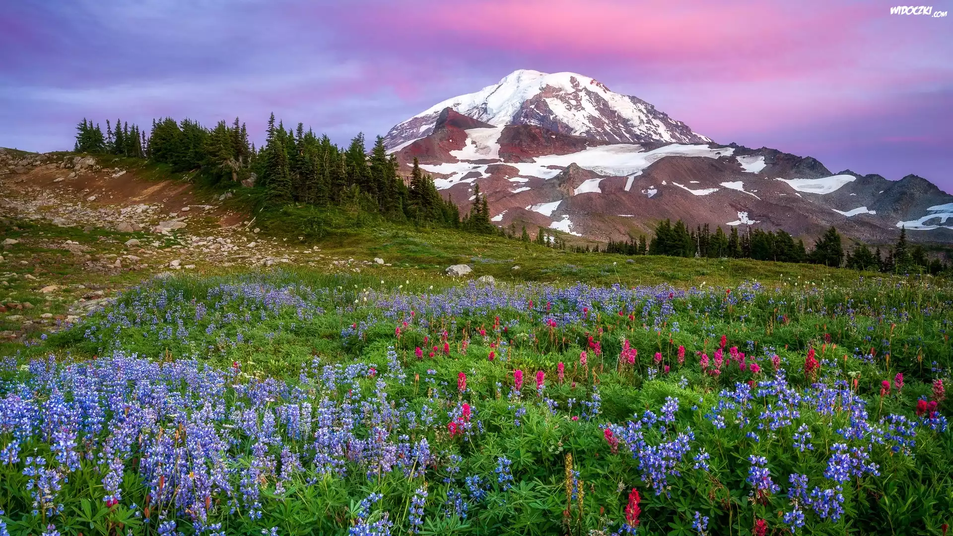 Zdjęcia, Góry, Łąka, Łubin, Drzewa