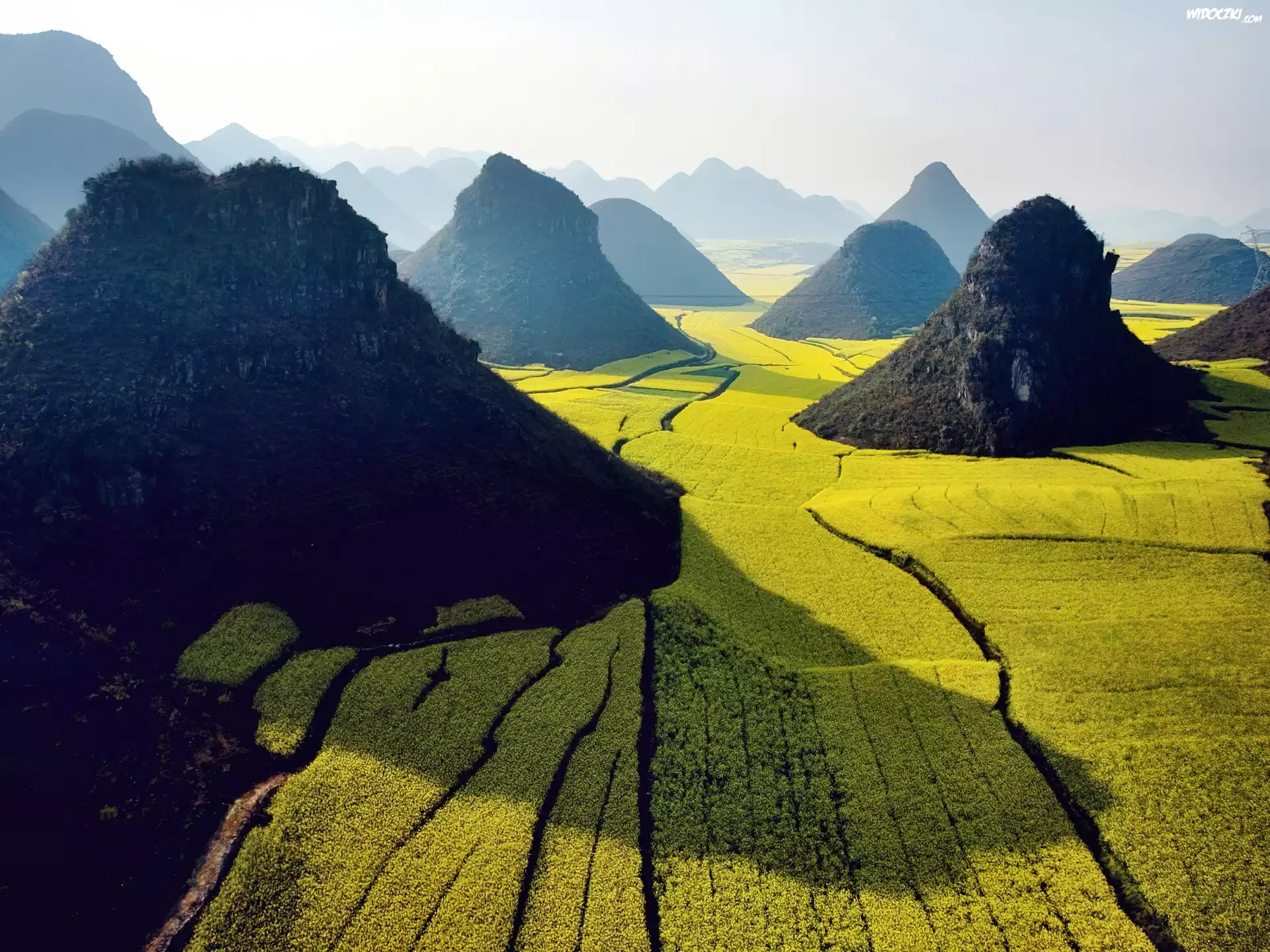 Zdjęcia, Góry, Pola, Uprawne, Zieleń