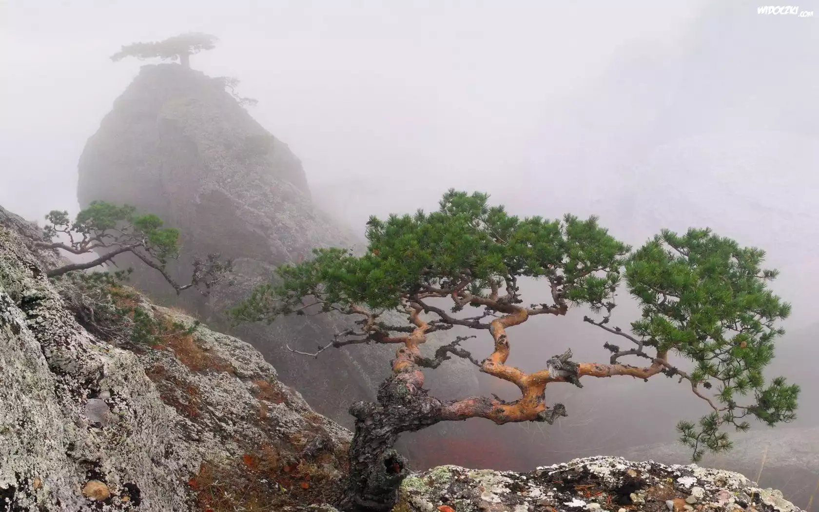 Góry, Drzewa, We, Mgle